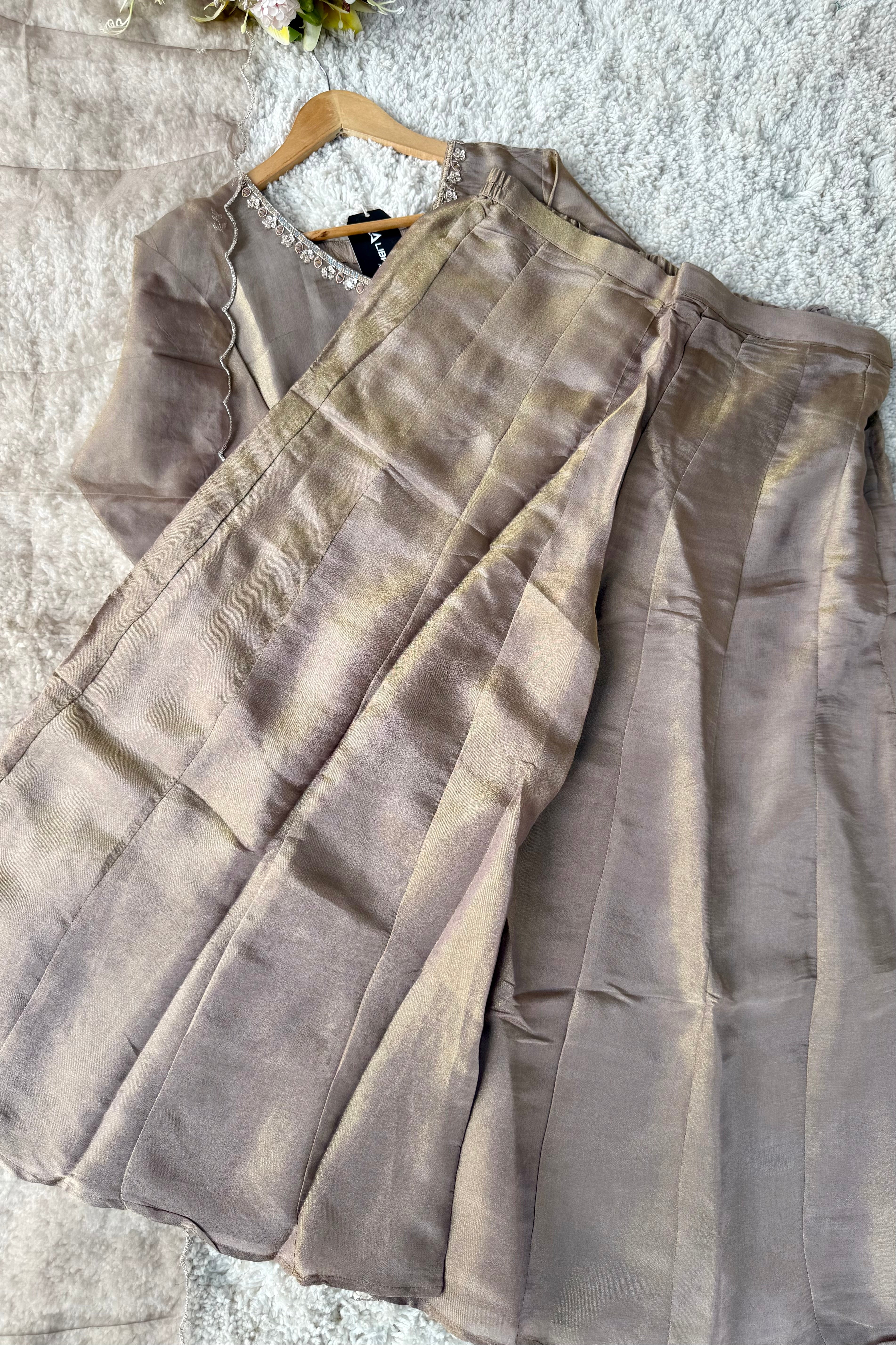 ✨Az002- Champagne Gold Tissue Divider Sharara Suit