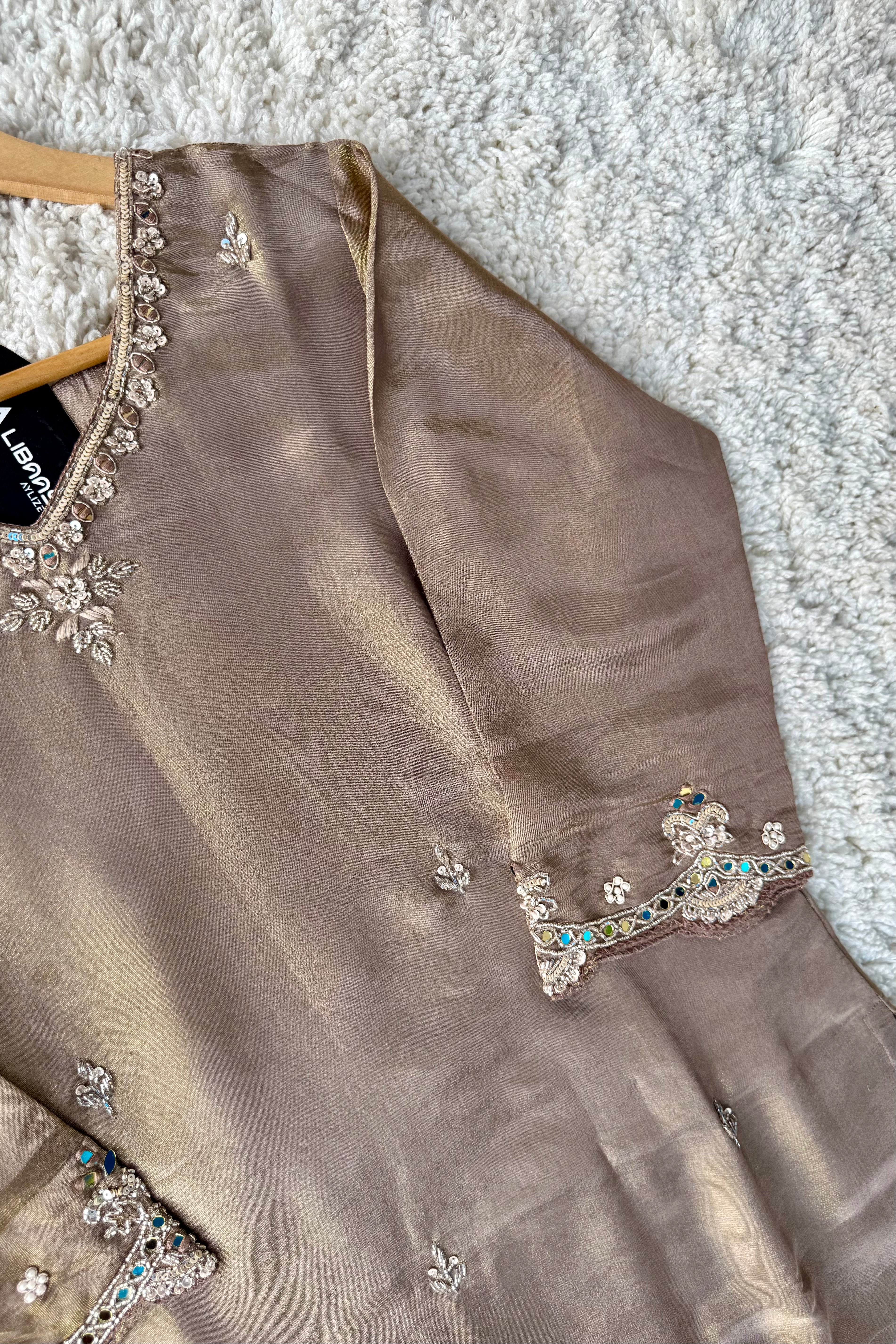 ✨Az002- Champagne Gold Tissue Divider Sharara Suit - XS