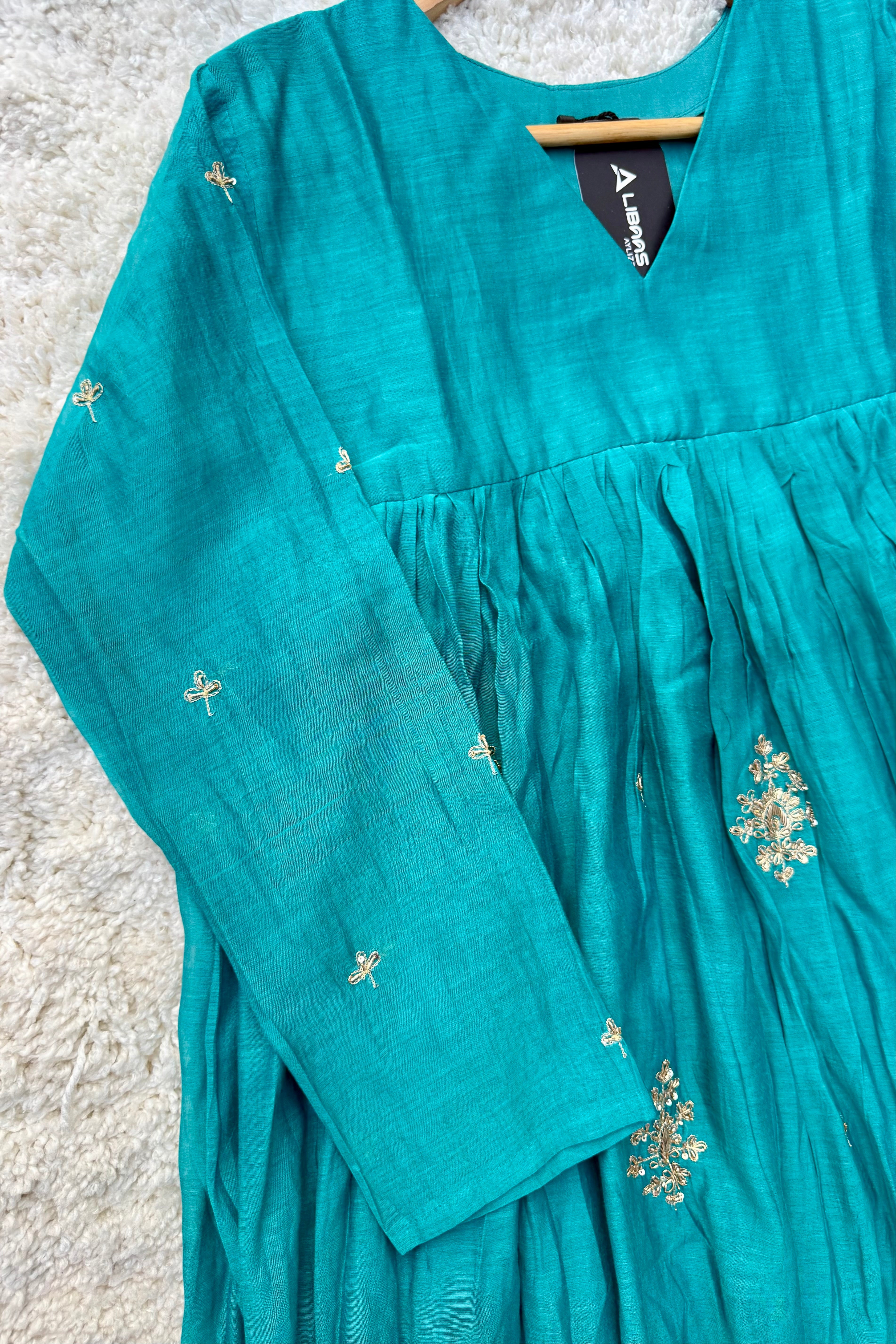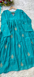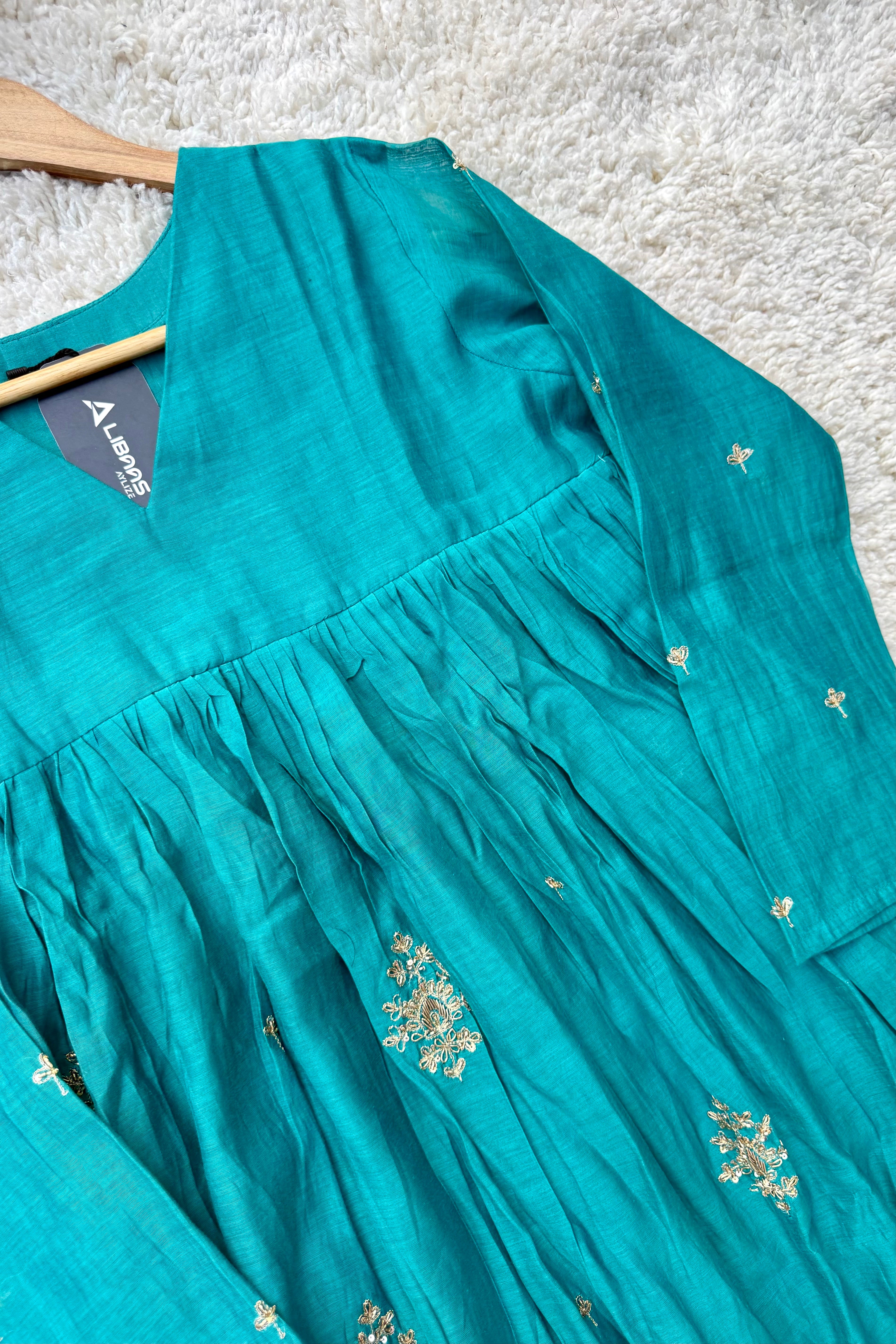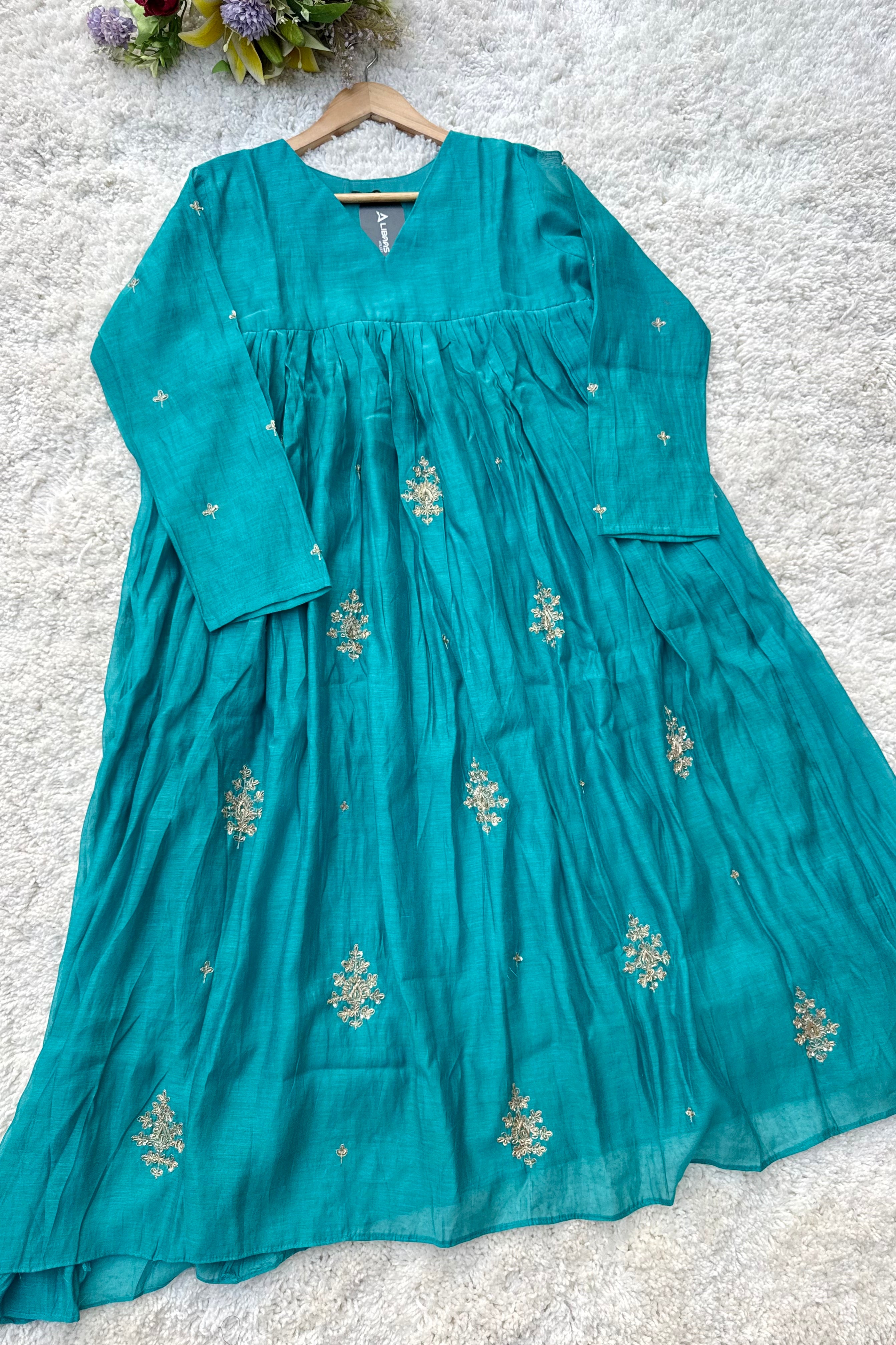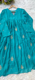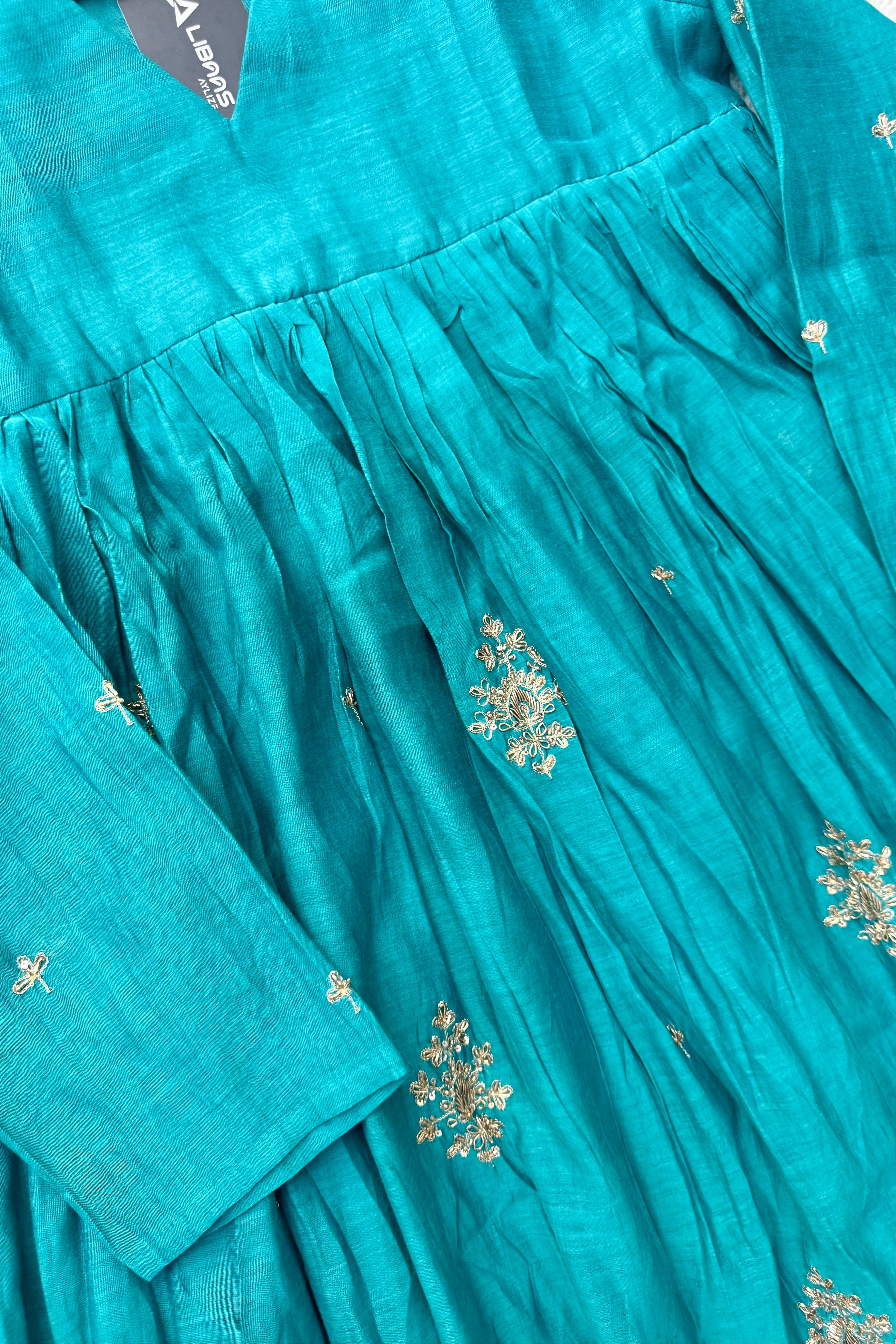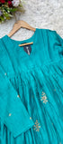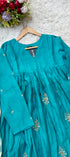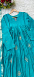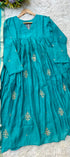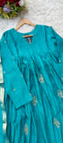 Premium Mul Chanderi Anarkali kurta set with heavy handwork on the top with a long mul chanderi dupatta paired with mul chanderi bottom