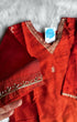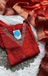 Beautiful handcrafted dola silk set with handwork on the yoke with a beautiful woven banarsi dupatta and a plane silk bottom