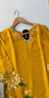 “Yeefa” Mustard Yellow dola silk hand print kurta set - XS