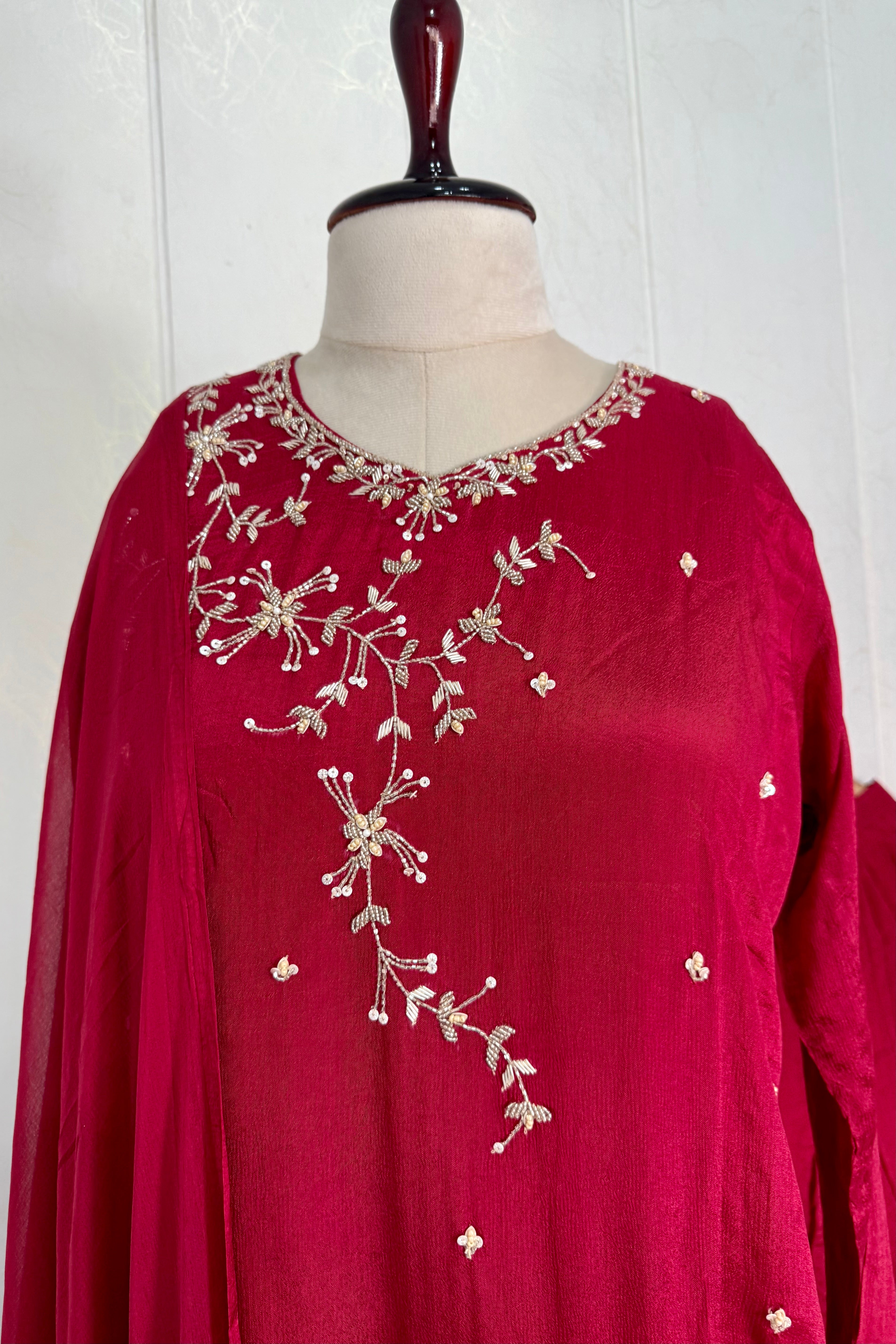 “Alya” Chinnon Silk Heavy Handwork Kurta Palazzo Set with Dupatta - XS