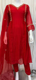 “Neha” karwa chauth Special Red Mul Chanderi Anarkali Kurta Set