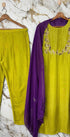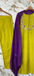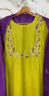 “Aisha” Lime Purple Elegance Dola Silk Kurta Set - XS