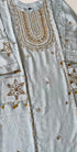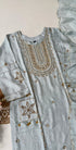 This premium ensemble features intricate embroidery on the neckline and hemline, paired with a matching Dola Silk bottom and a delicate embroidered dupatta with scalloped edges. Perfect for festive gatherings, wedding celebrations, and special occasions.
