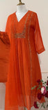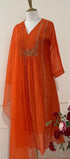 “Ayza” Premium Orange Mul Chanderi A Line Suit set 🛍️ - XS