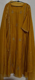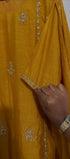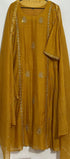 Premium Mul Chanderi a line kurta set with heavy handwork on the neck line sleeve & daman of the top with a long Mul Chanderi dupatta paired with mul chanderi bottom