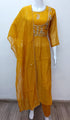 A classic mul chanderi A line suit set with handwork is an extremely pretty option to wear. Make a classy style statement with a beautiful color scheme with embroidery details