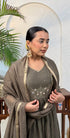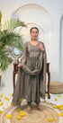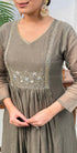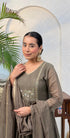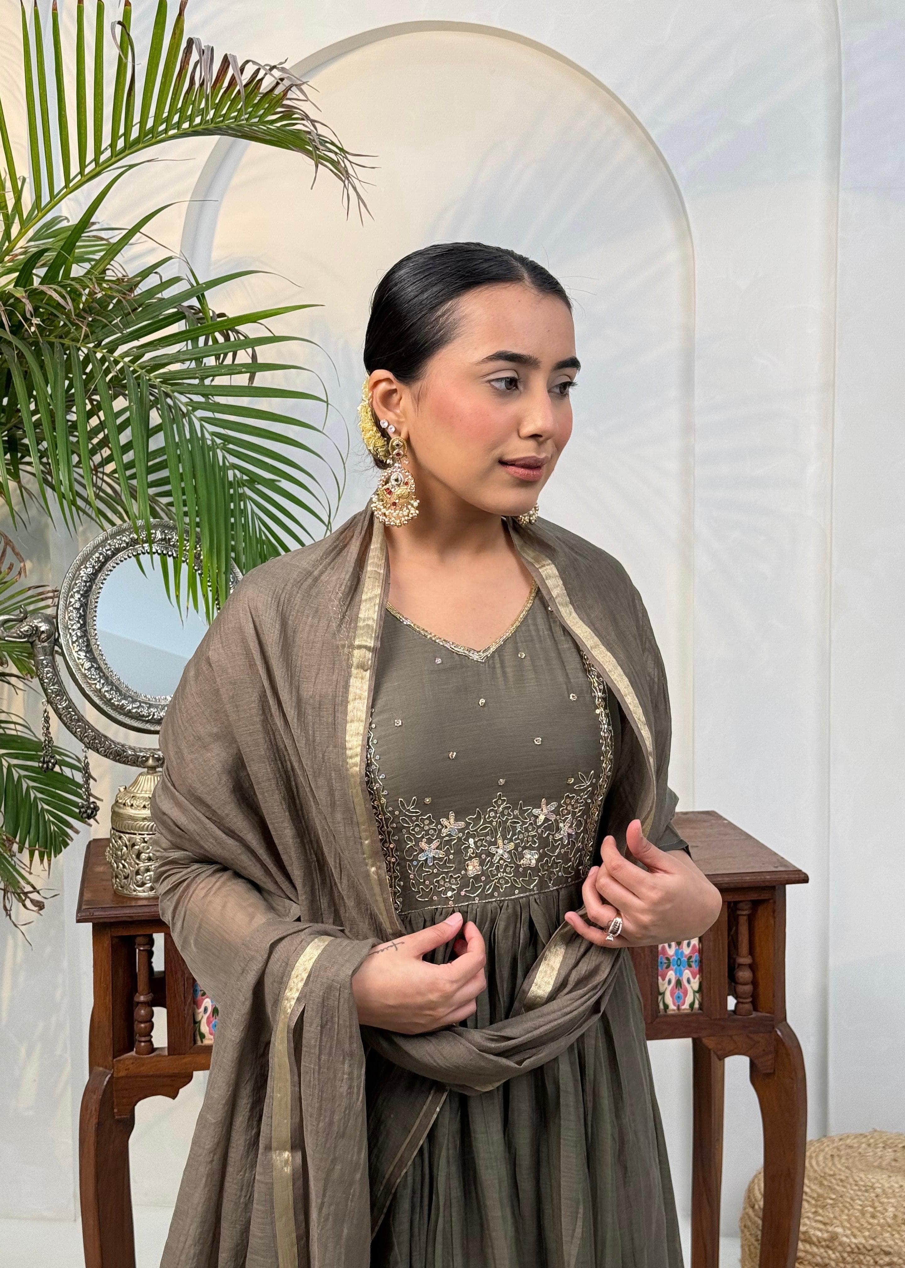 “Eiryan” Olive Brown Mul Chanderi Handwork Anarkali suit set