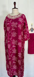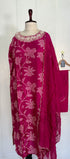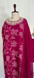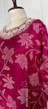 Printed Russian silk set with handwork work on the yoke of the kurta nd sleeves with a long organs scalping dupatta with a silk bottom