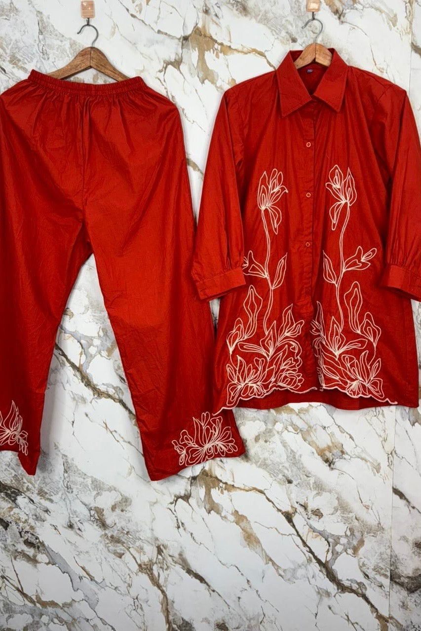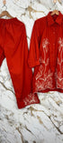 “Zareen” Dola Silk Embroidered Co-Ord Set - XS / Rust