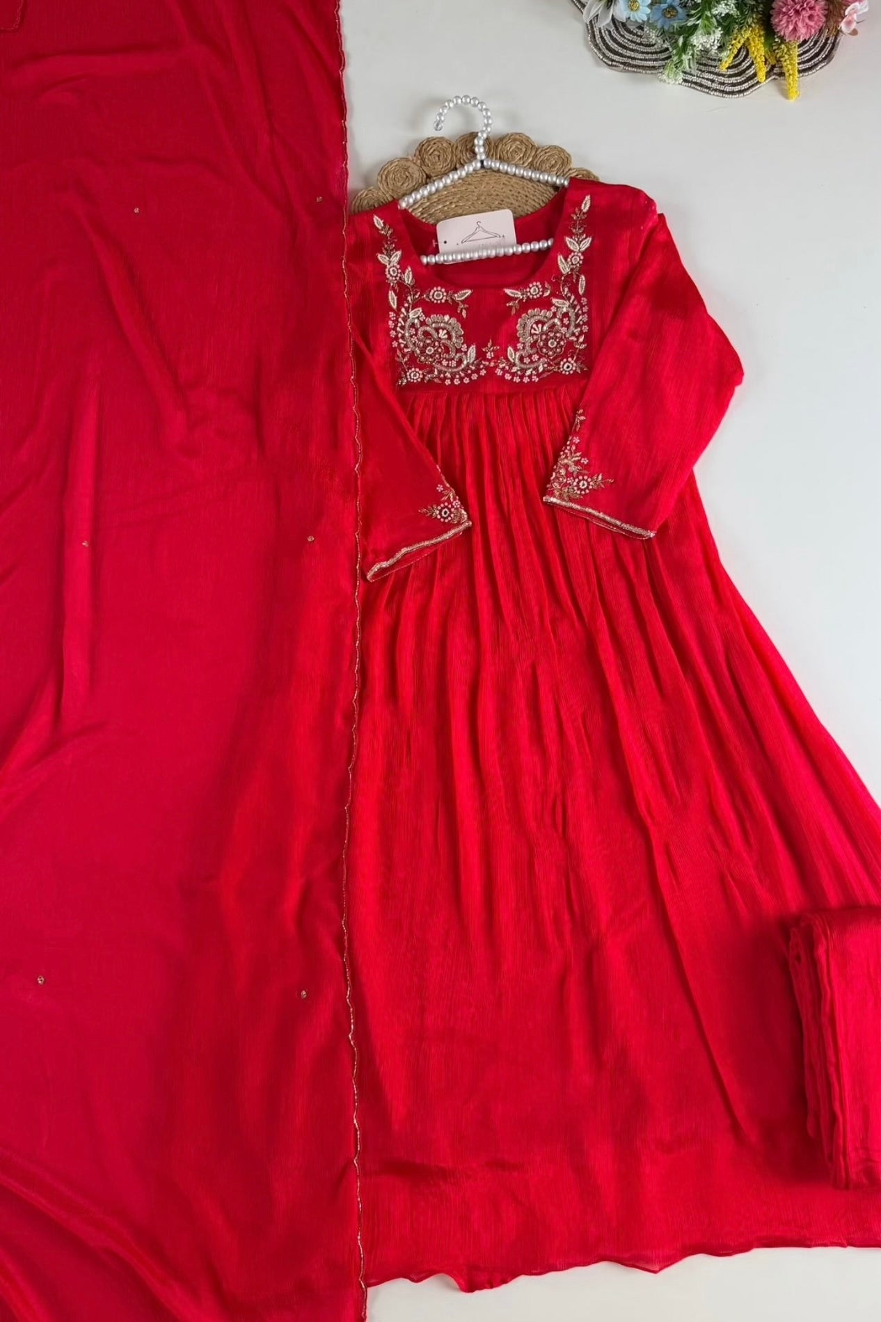 “Saanvi” Chinon Handwork Anarkali Kurti Pant With Dupatta Set Chinon Handwork Anarkali Kurti Pant With Dupatta Set