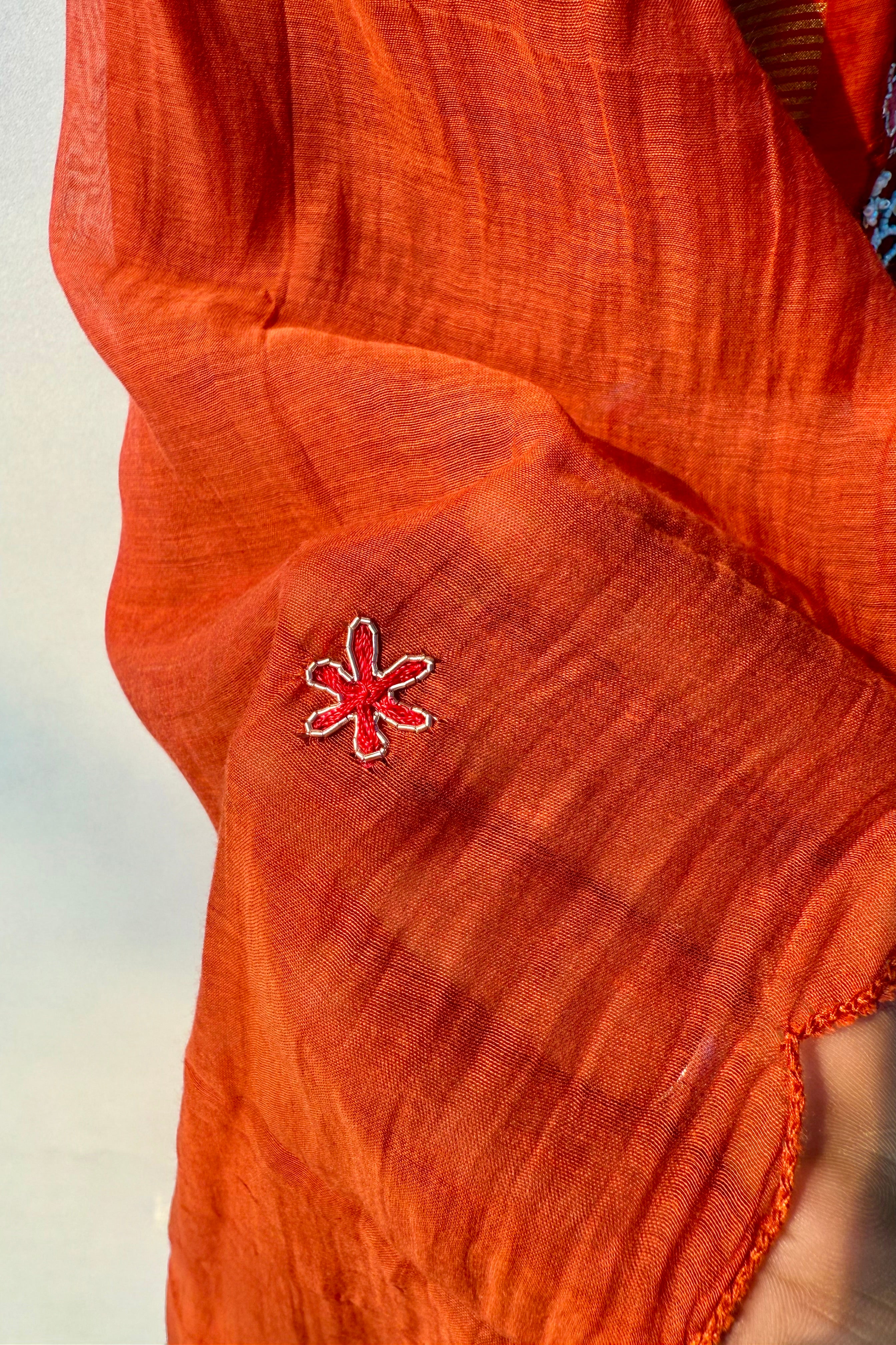 - Top: Mul Chanderi with intricate handwork on the front panel & sleeves