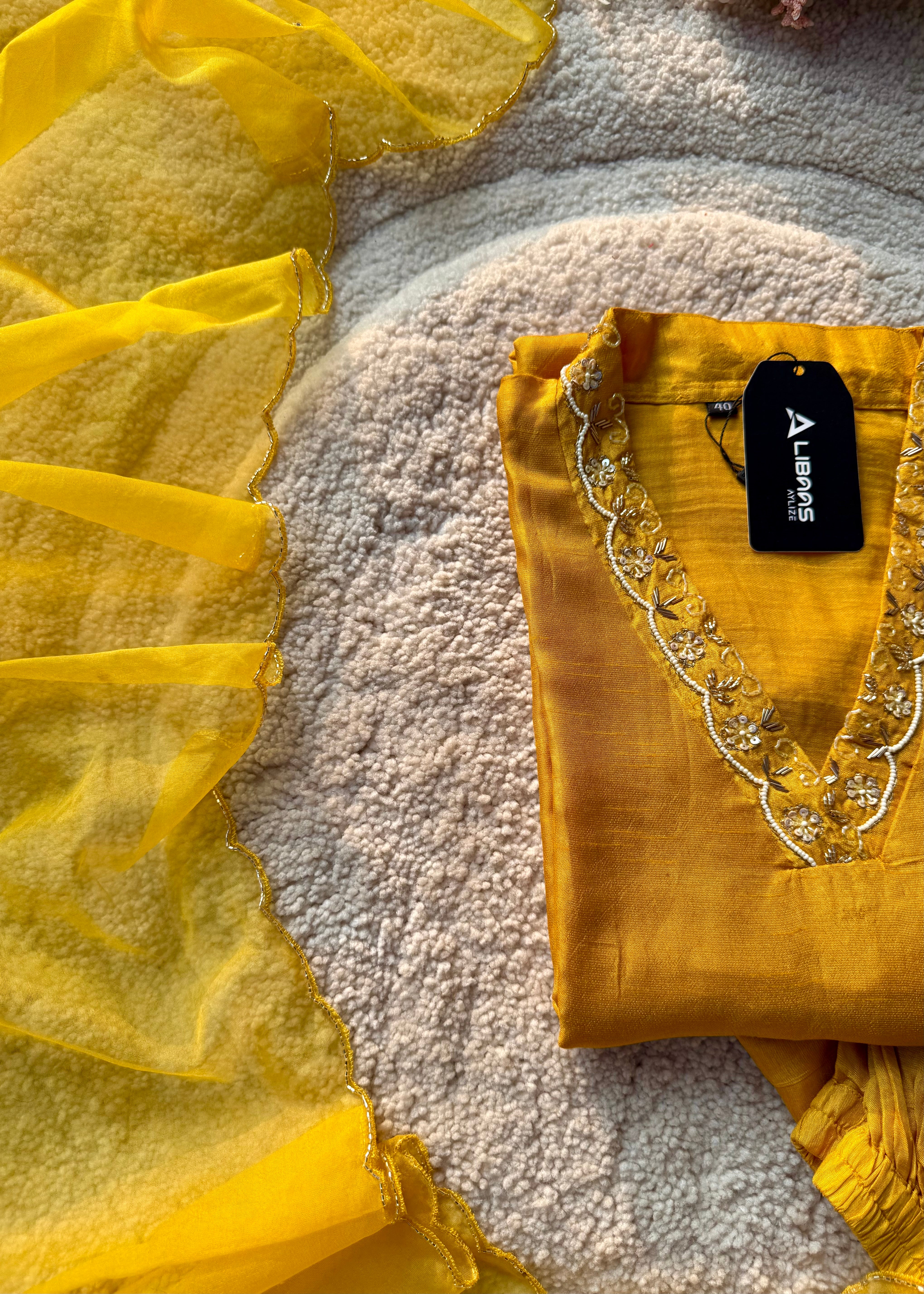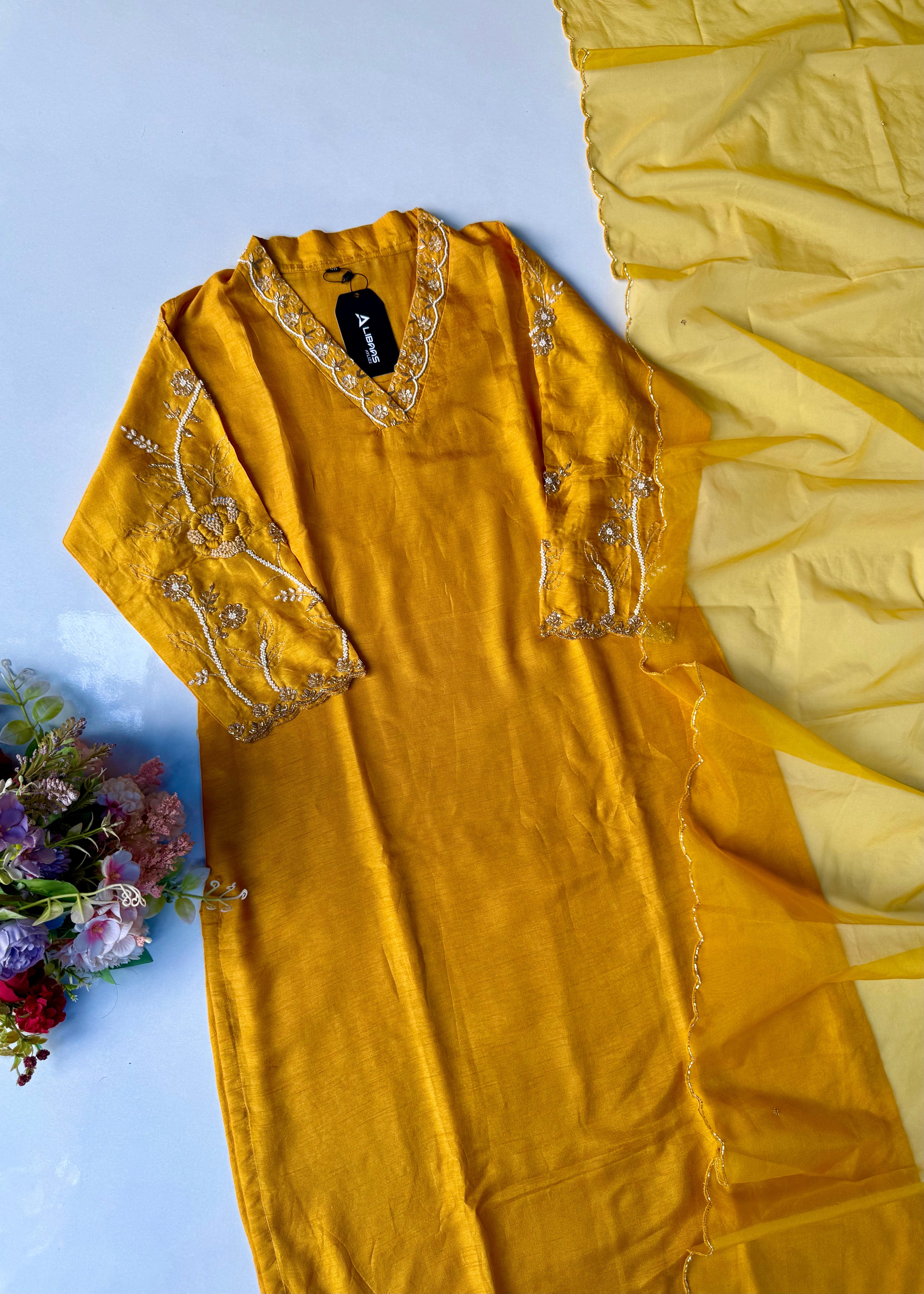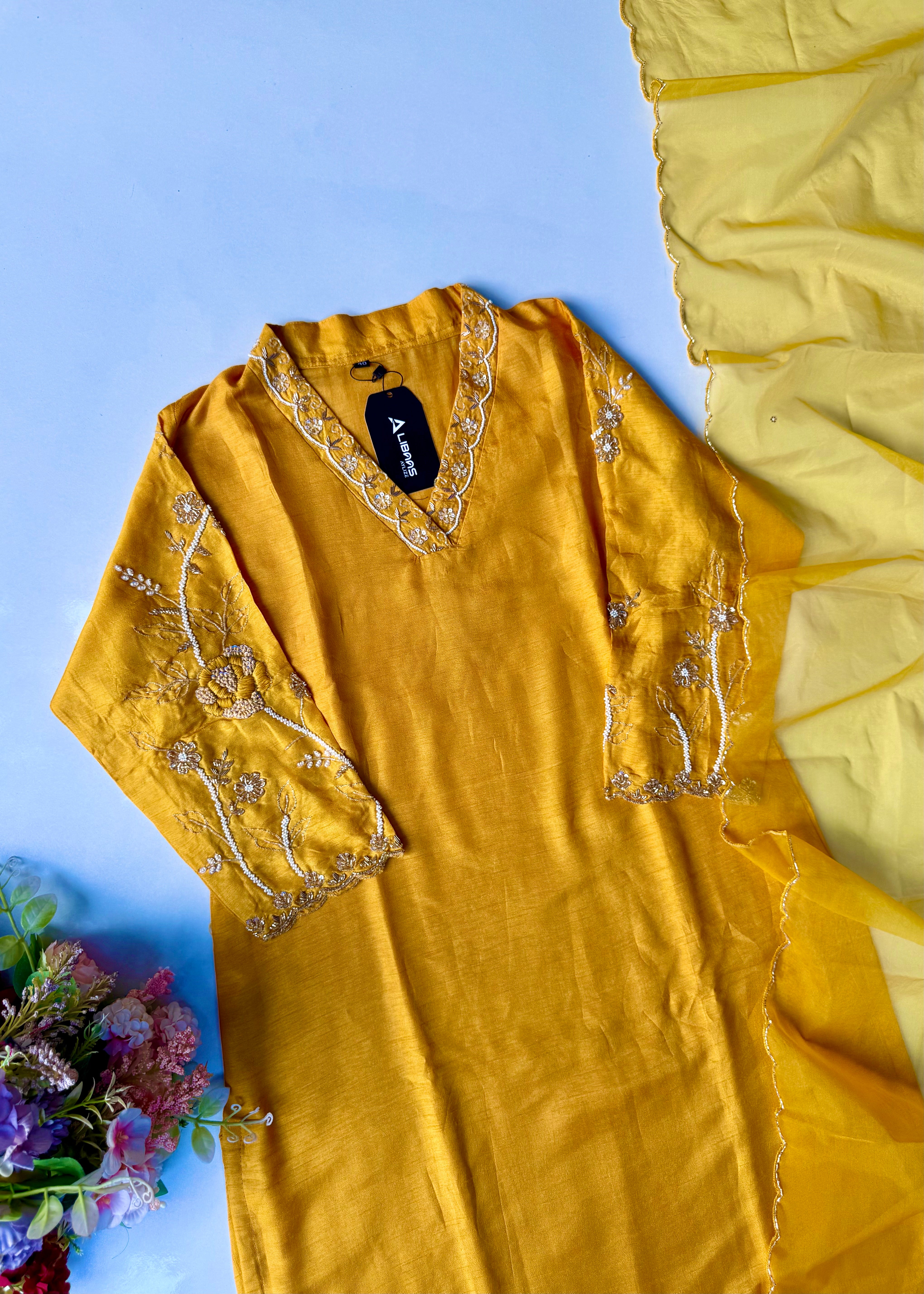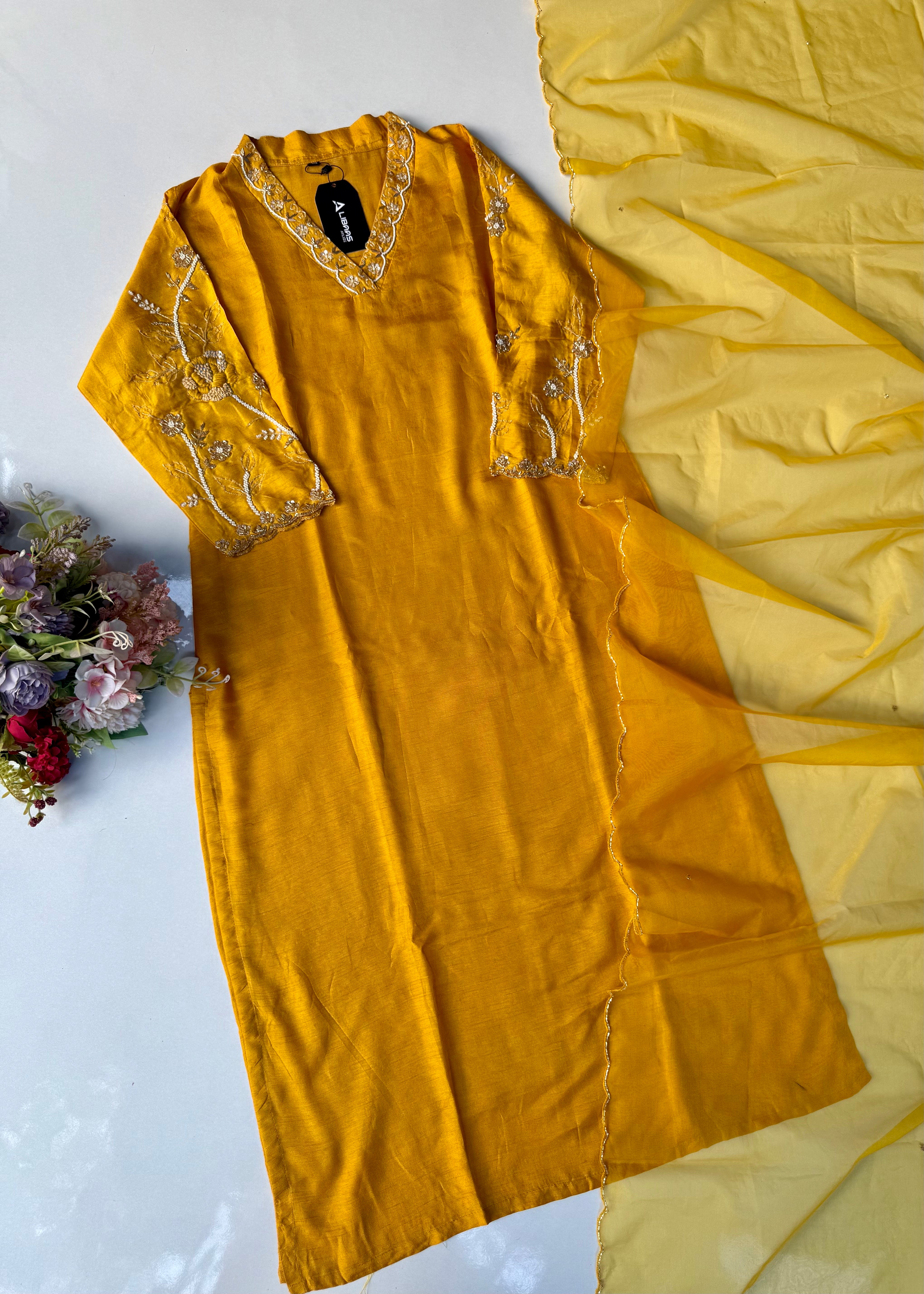 - 3/4th sleeves with matching handwork embroidery