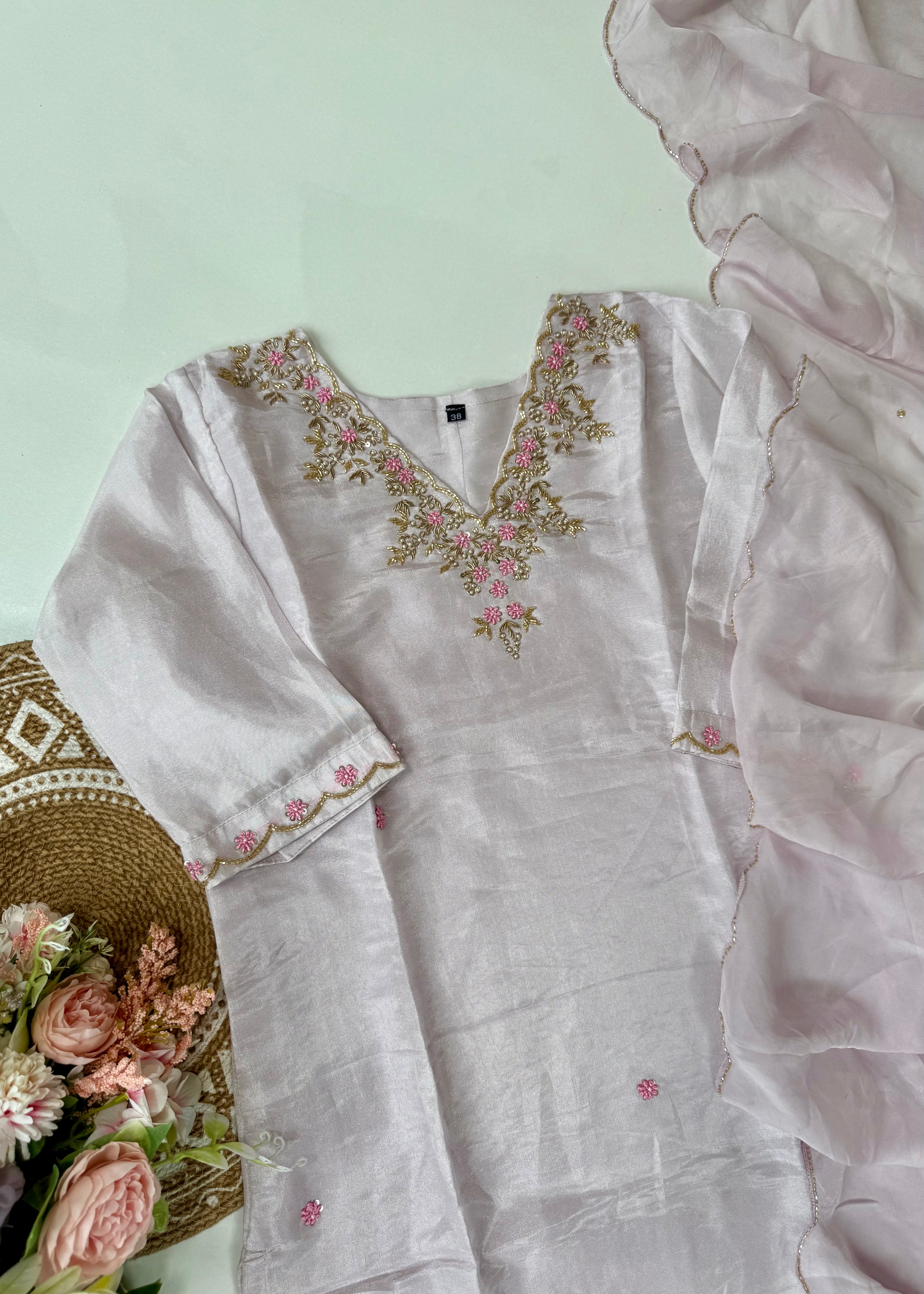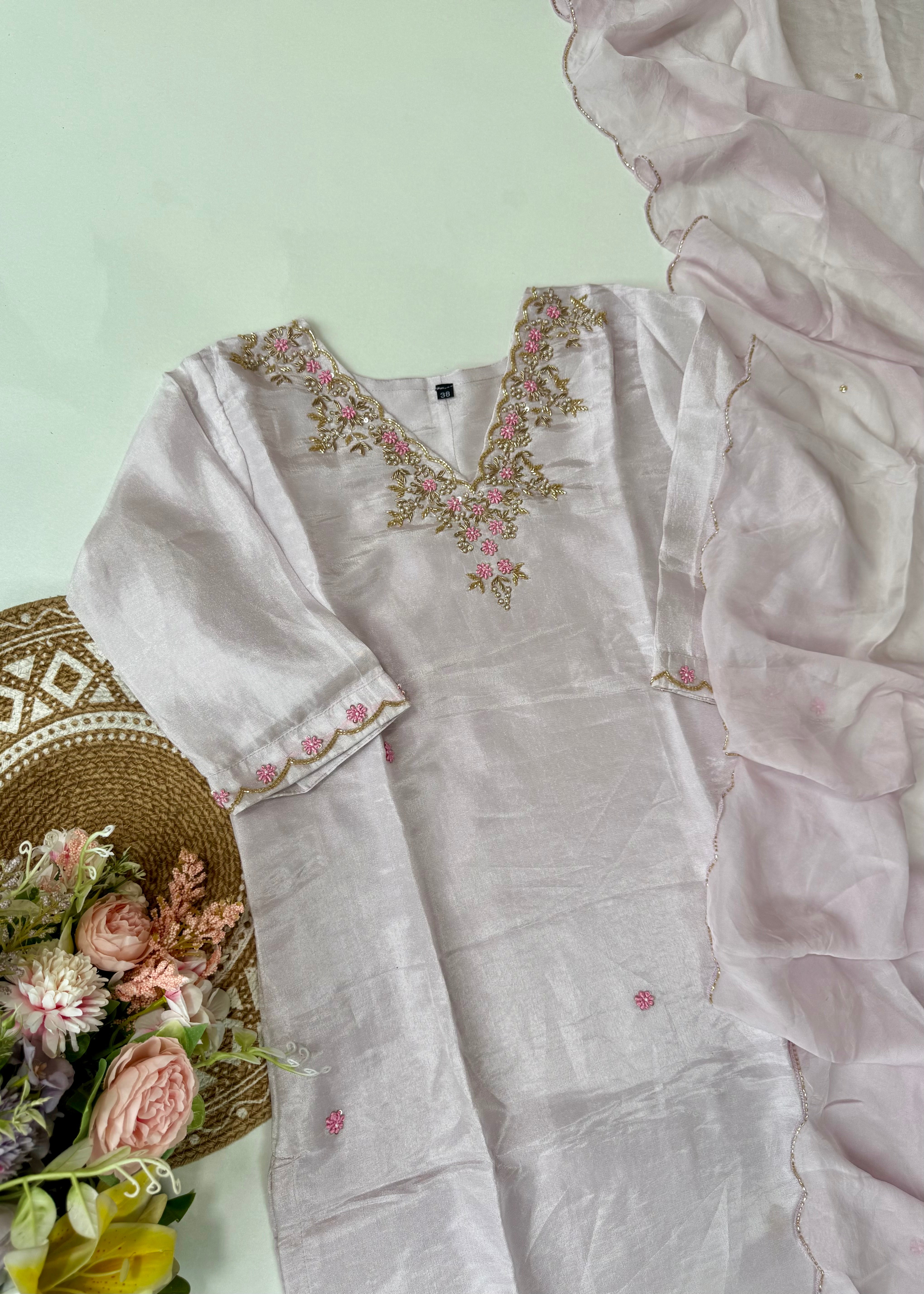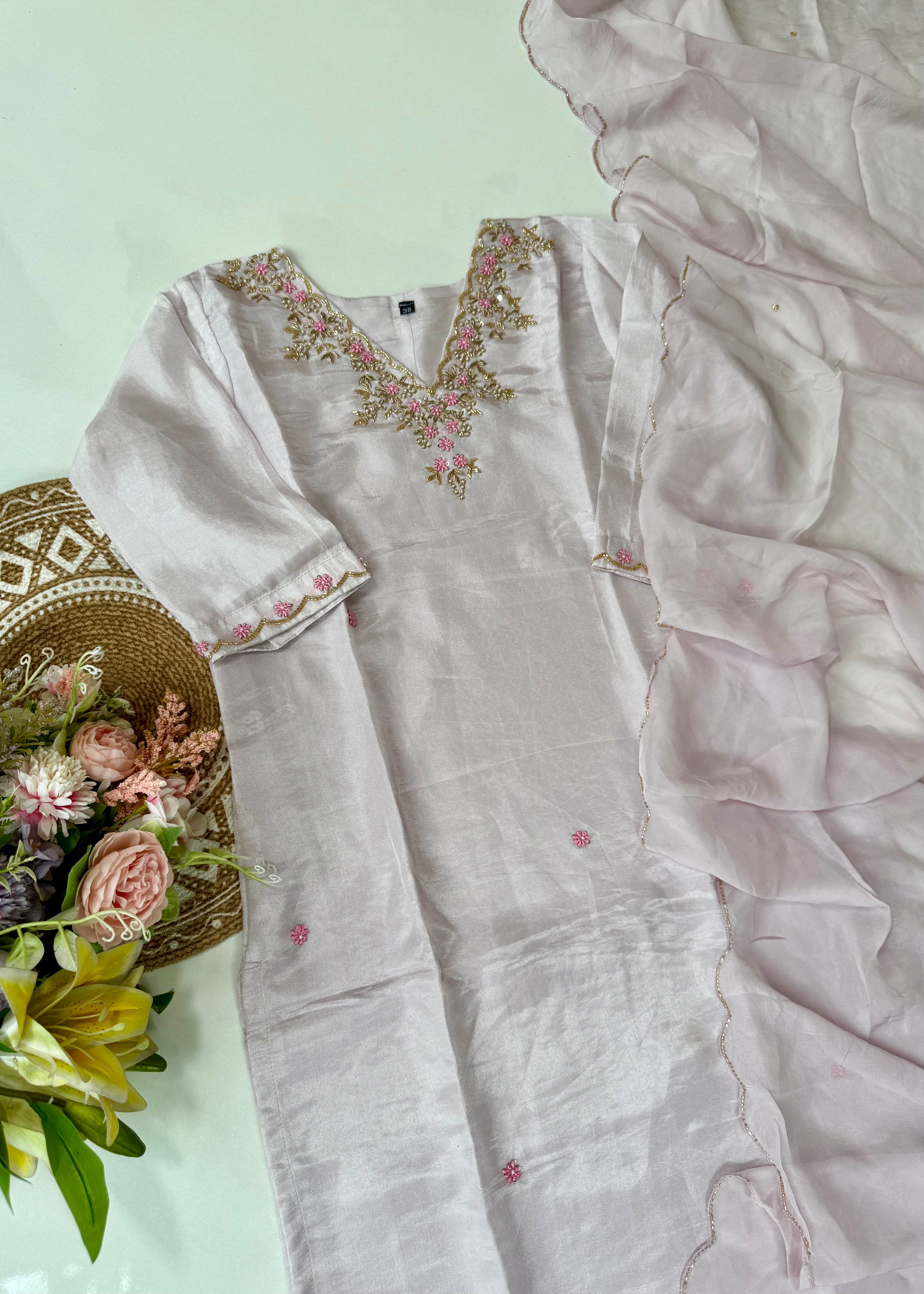 “Aylize” Graceful Pastel shade Tisse Silk Handwork Suit Set ✨