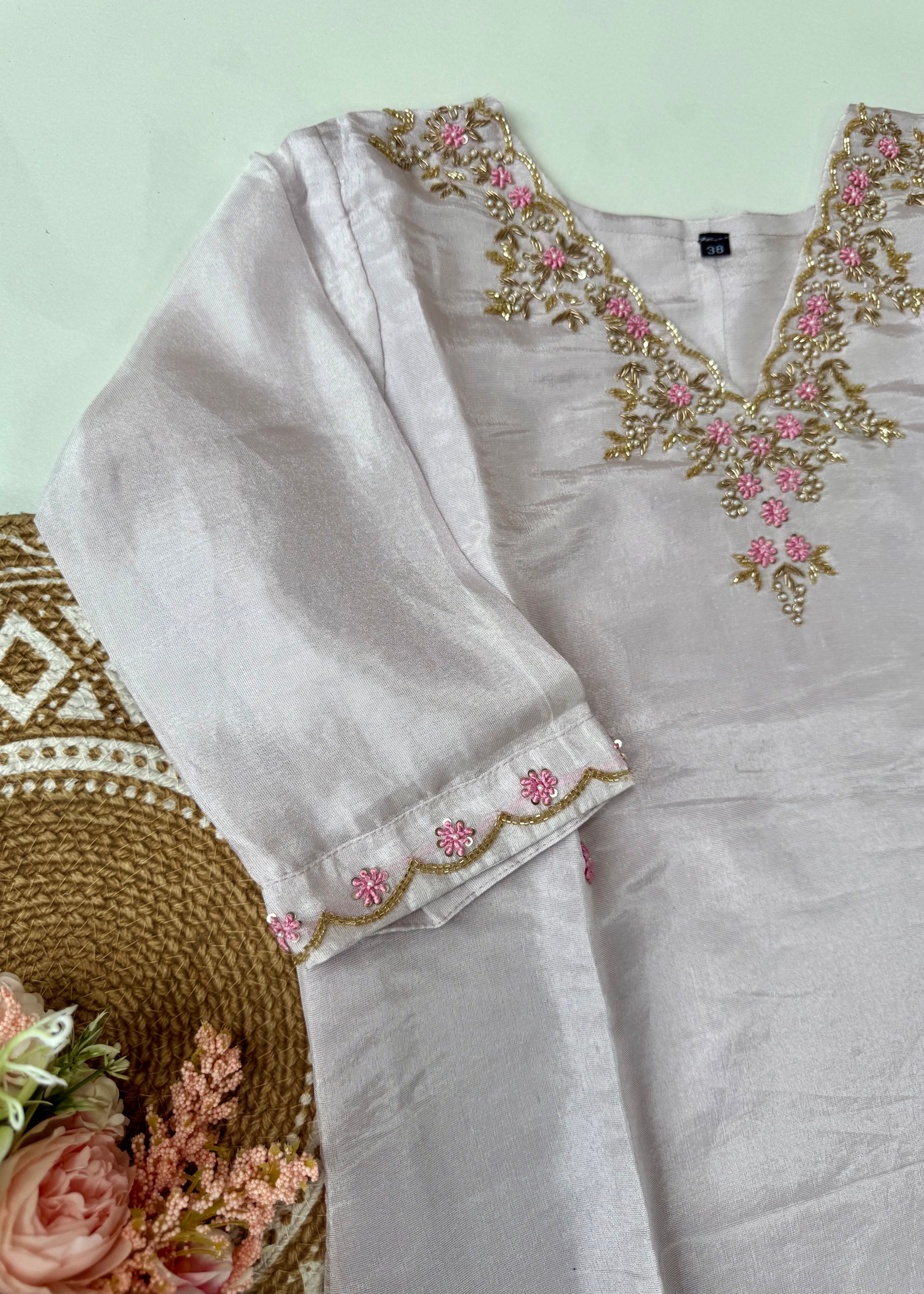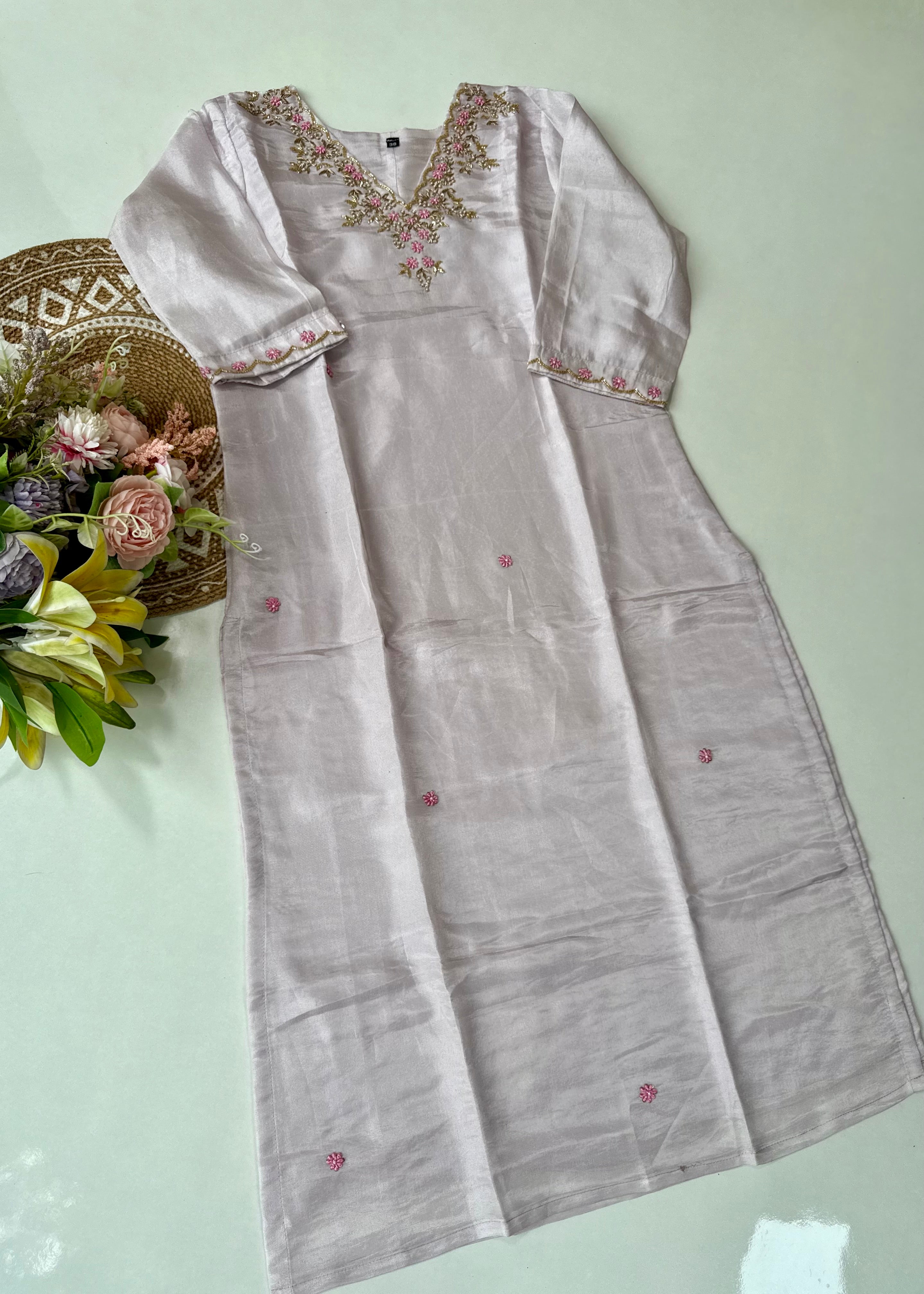 Experience luxury with our beautifully crafted Tissue Silk Kurta Set. Featuring elegant handwork detailing, this set is perfect for weddings, festive gatherings, and parties.