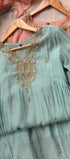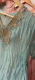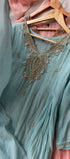 Handcrafted zardozi work with elegant pintuck finish for a subtle festive charm.