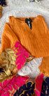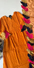 - Top: Mul Chanderi with fine pleated detailing on front and colorful appliqué handwork on sleeves