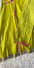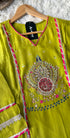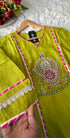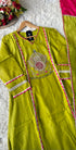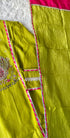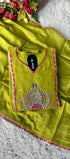 Our Mul Chanderi sets-adorned with timeless peacock yoke motifs-unfold in two regal shades: Aqua blue and Mehendi Green.