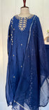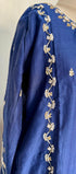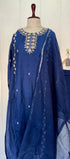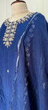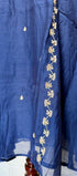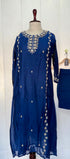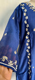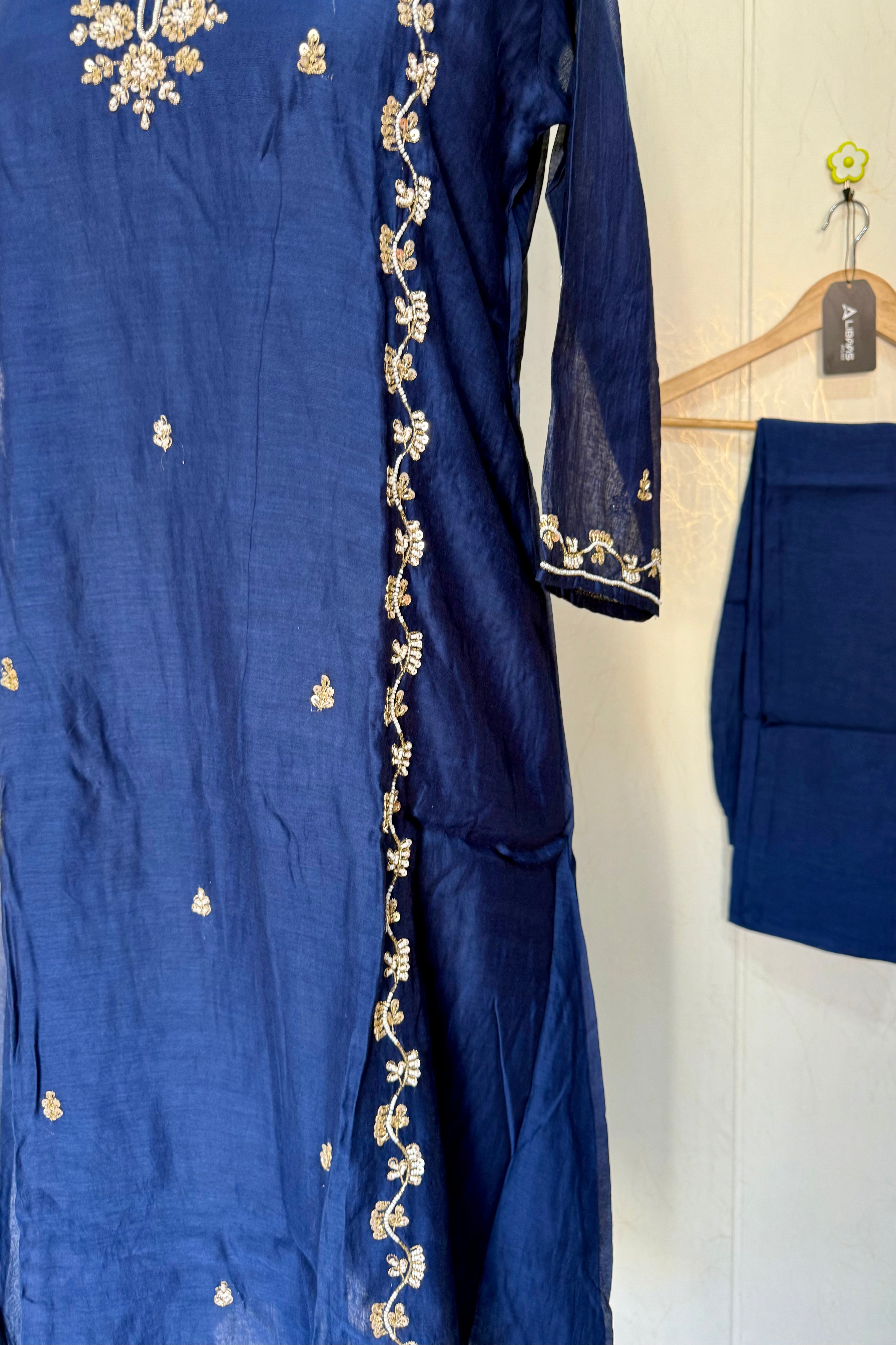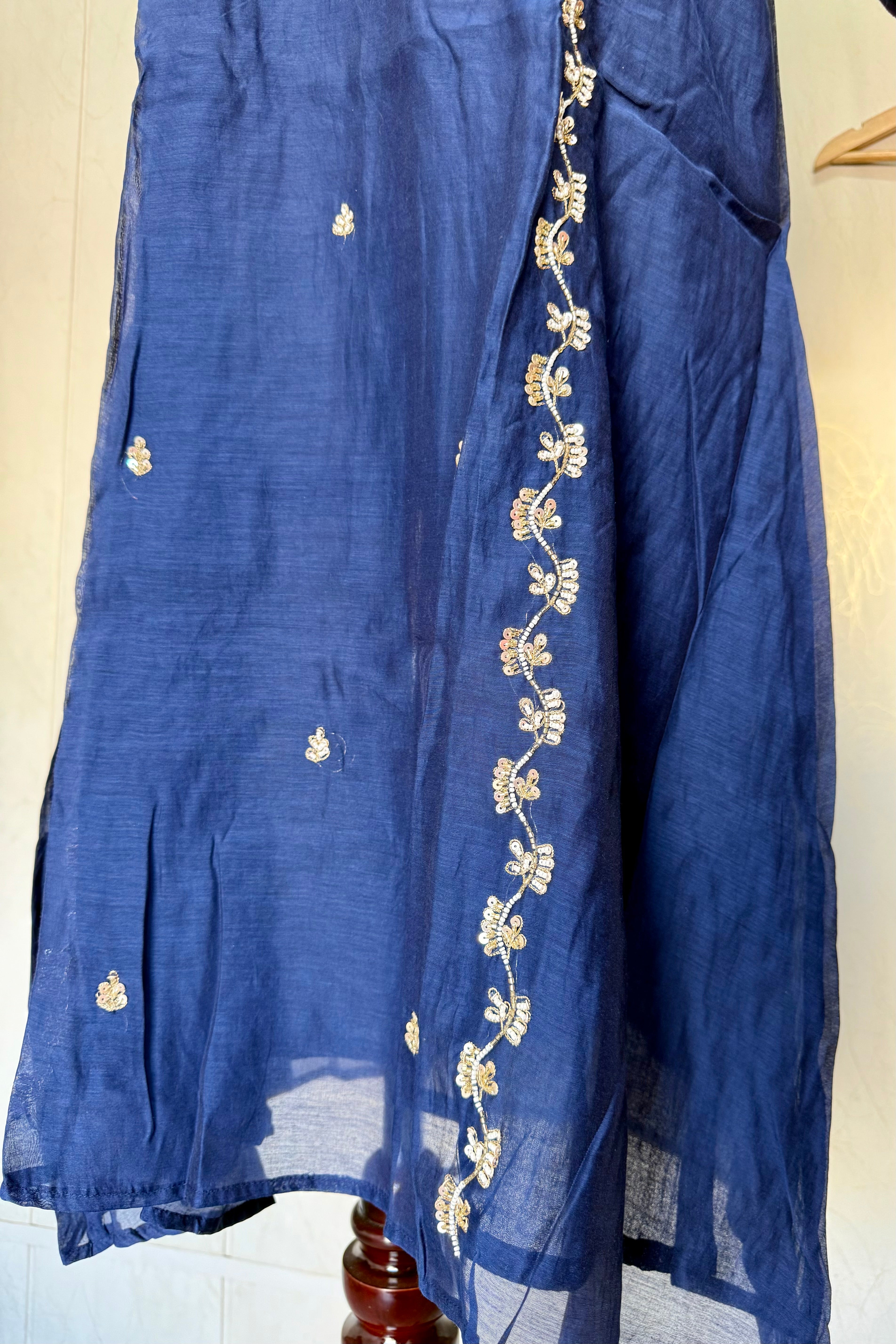 “Faraj” Navy Blue Pure Mul-Chanderi Party wear A Line suit set - XS