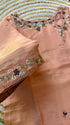 A very beautiful piece with handwork on the yoke and sleeve of the kurta with a beautiful sided scallop tissue organza dupatta and a tissue silk bottom