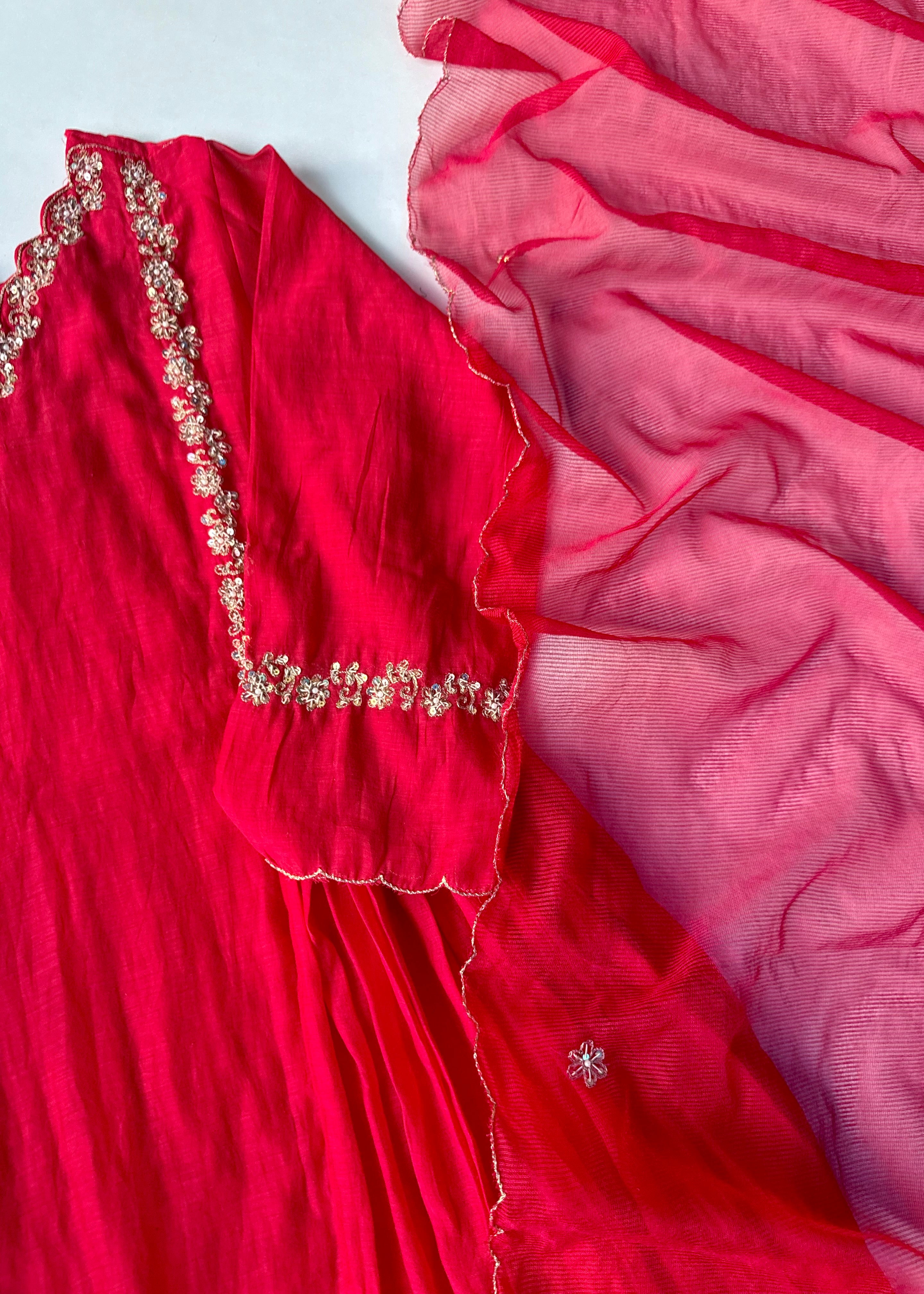 “Neha” karwa chauth Special Red Mul Chanderi Anarkali Kurta Set