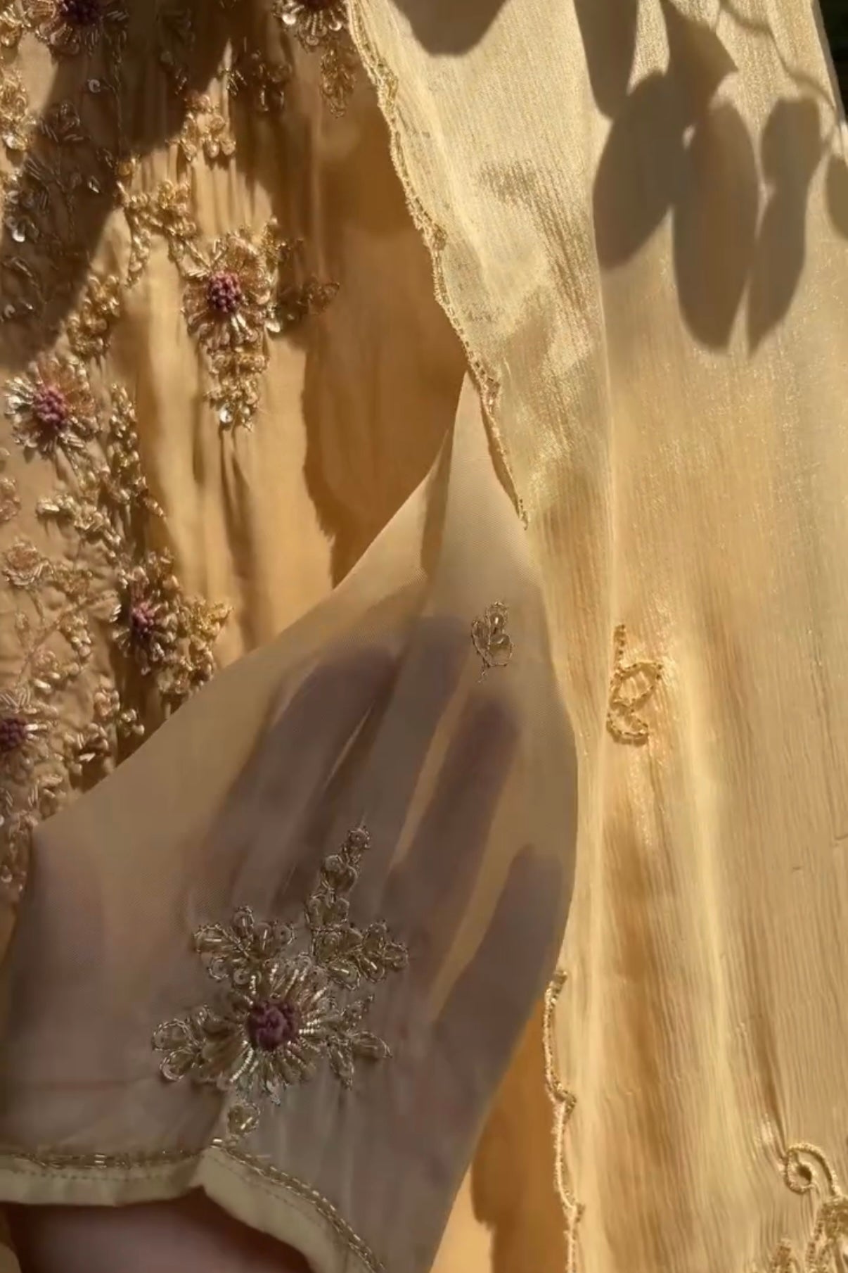 "Palermo” Beige Biscuit viscose organza kurti bottom dupatta set 🛍️