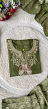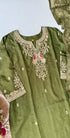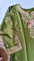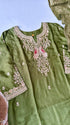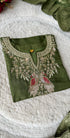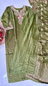 “Roses” Premium Green Dola Silk handcrafted kurti bottom with Banarsi dupatta set
