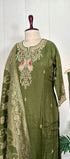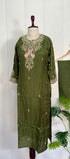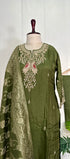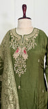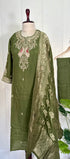 “Roses” Premium Green Dola Silk handcrafted kurti bottom with Banarsi dupatta set