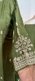 “Roses” Premium Green Dola Silk handcrafted kurti bottom with Banarsi dupatta set - XS