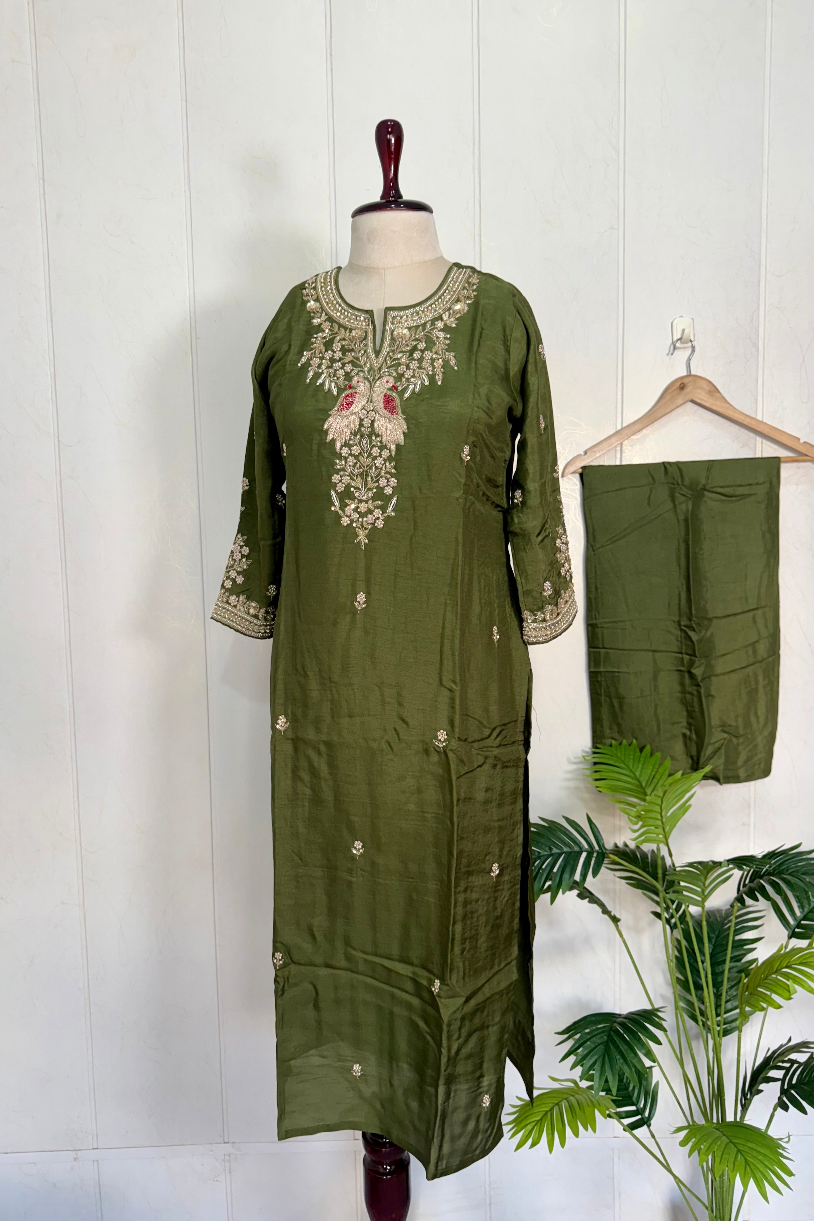 - 3/4th sleeves with matching handwork embroidery