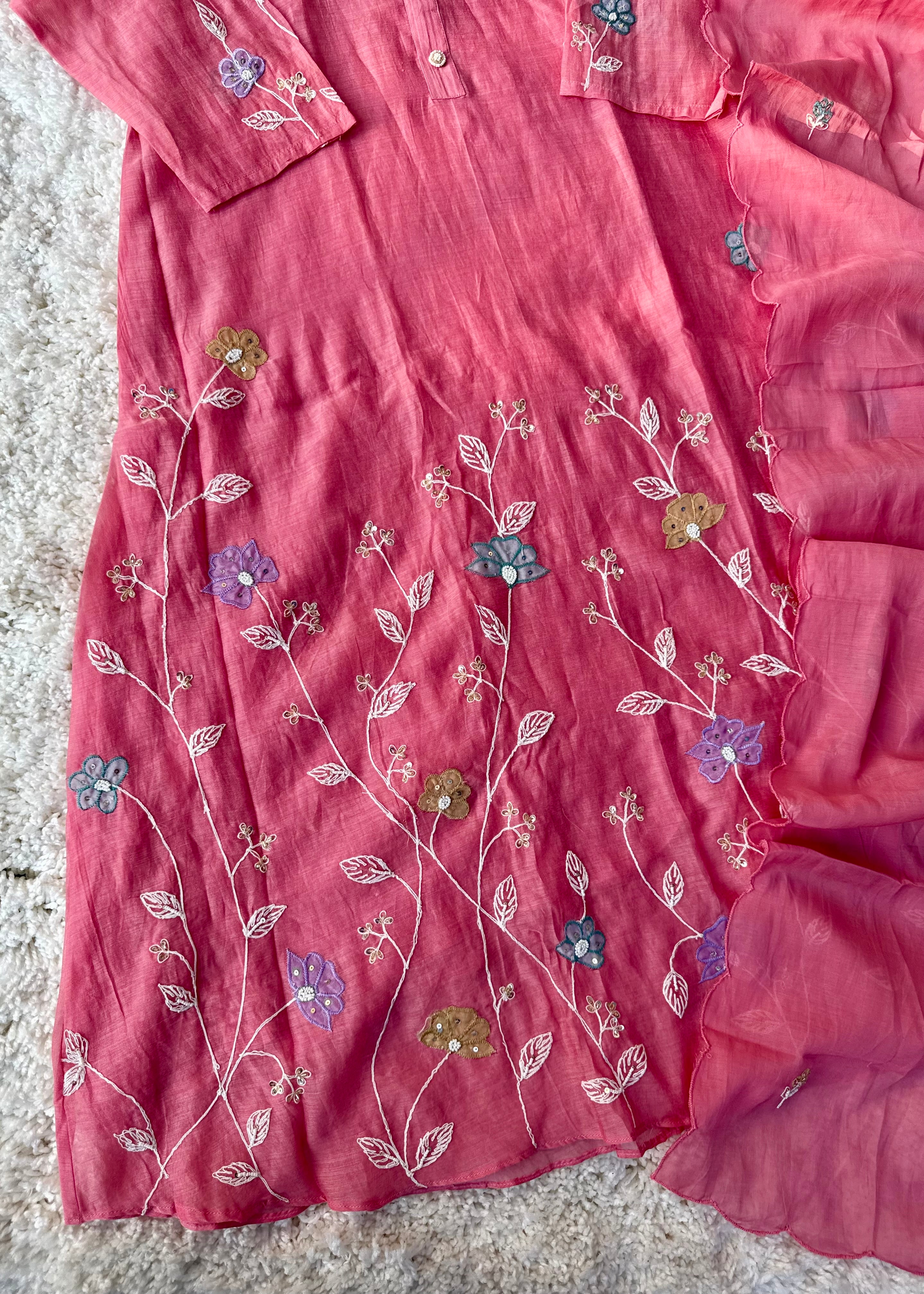 “Thread” Premium Bloom Pink Mul Chanderi A Line kurta set