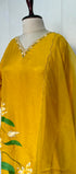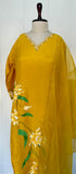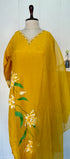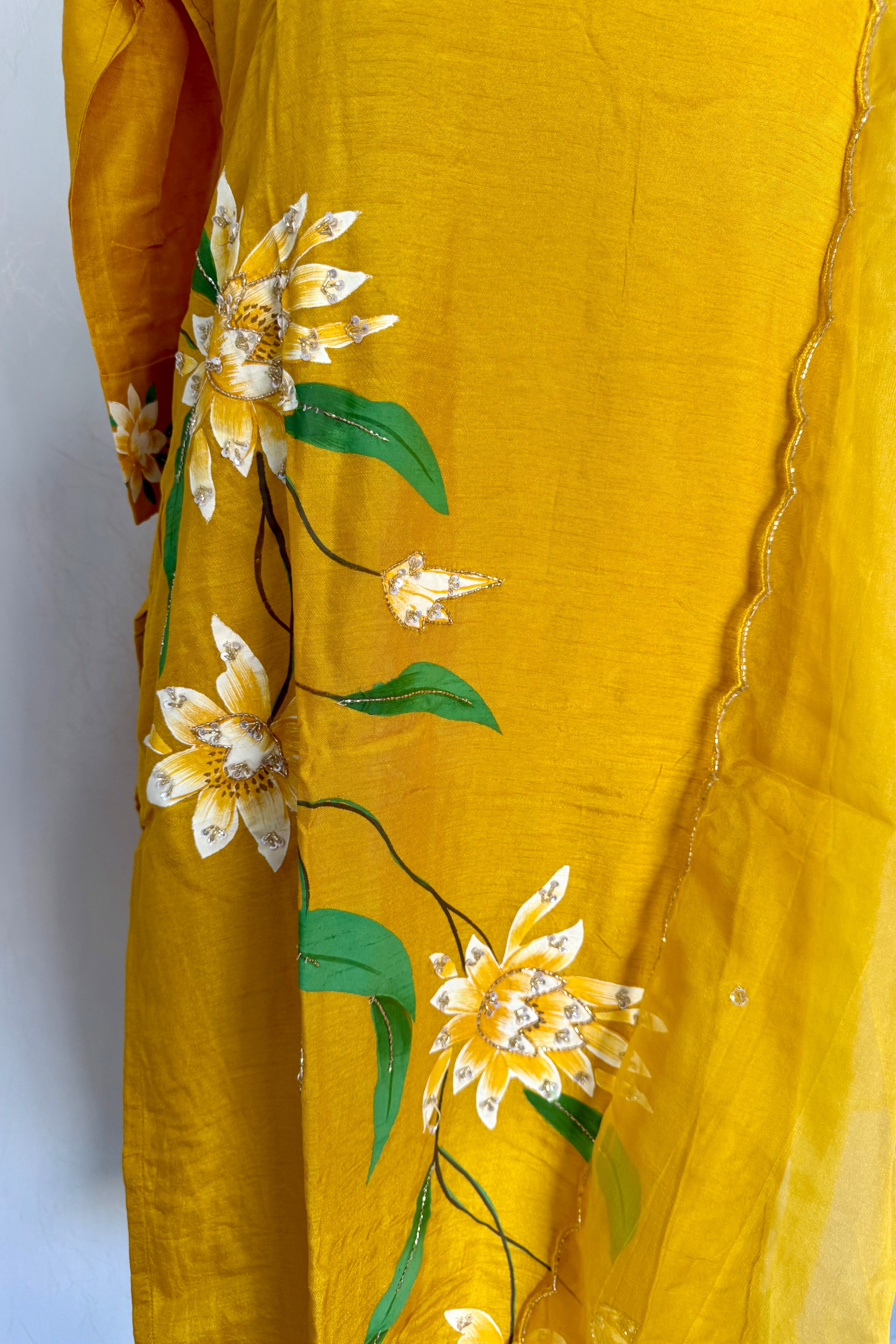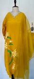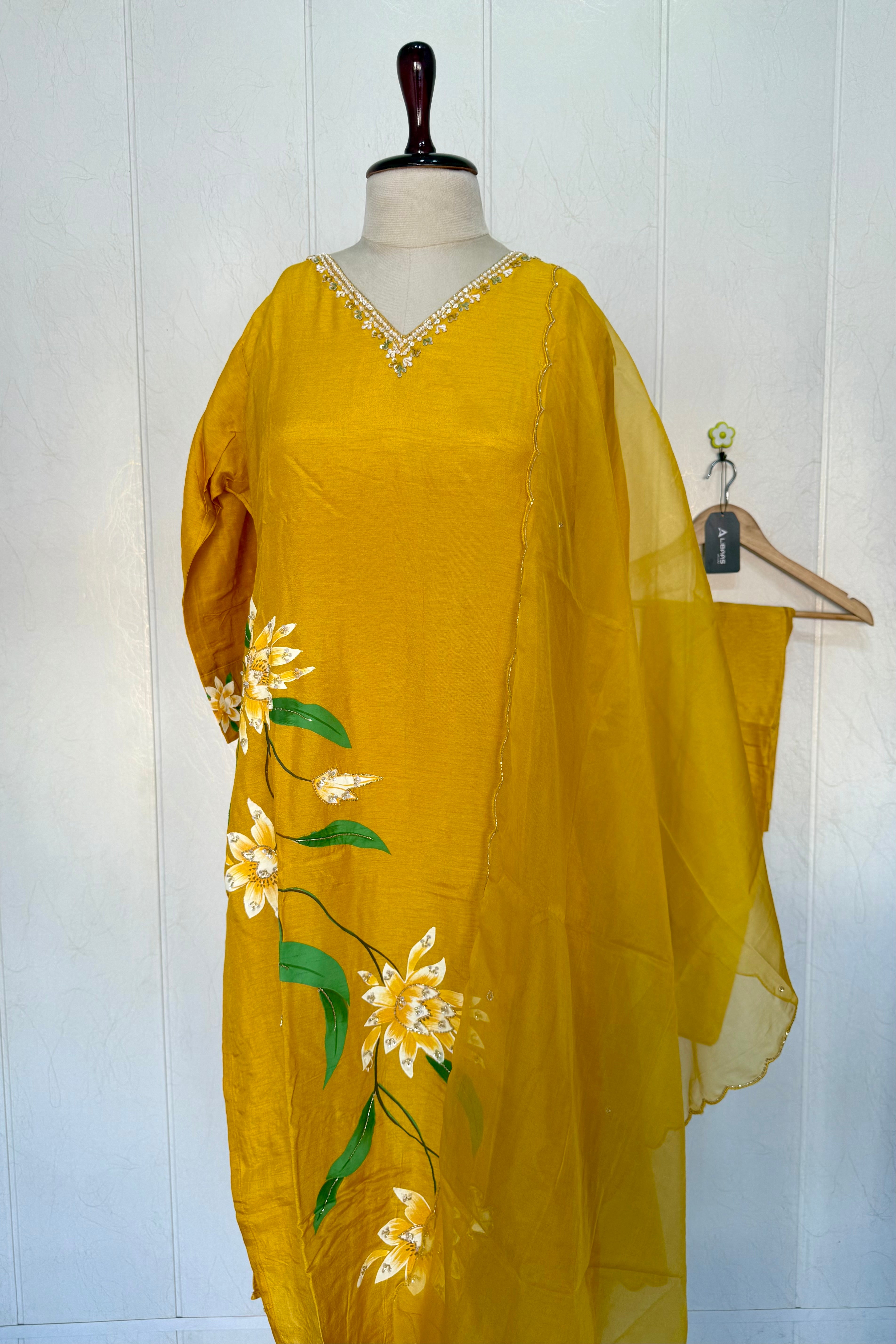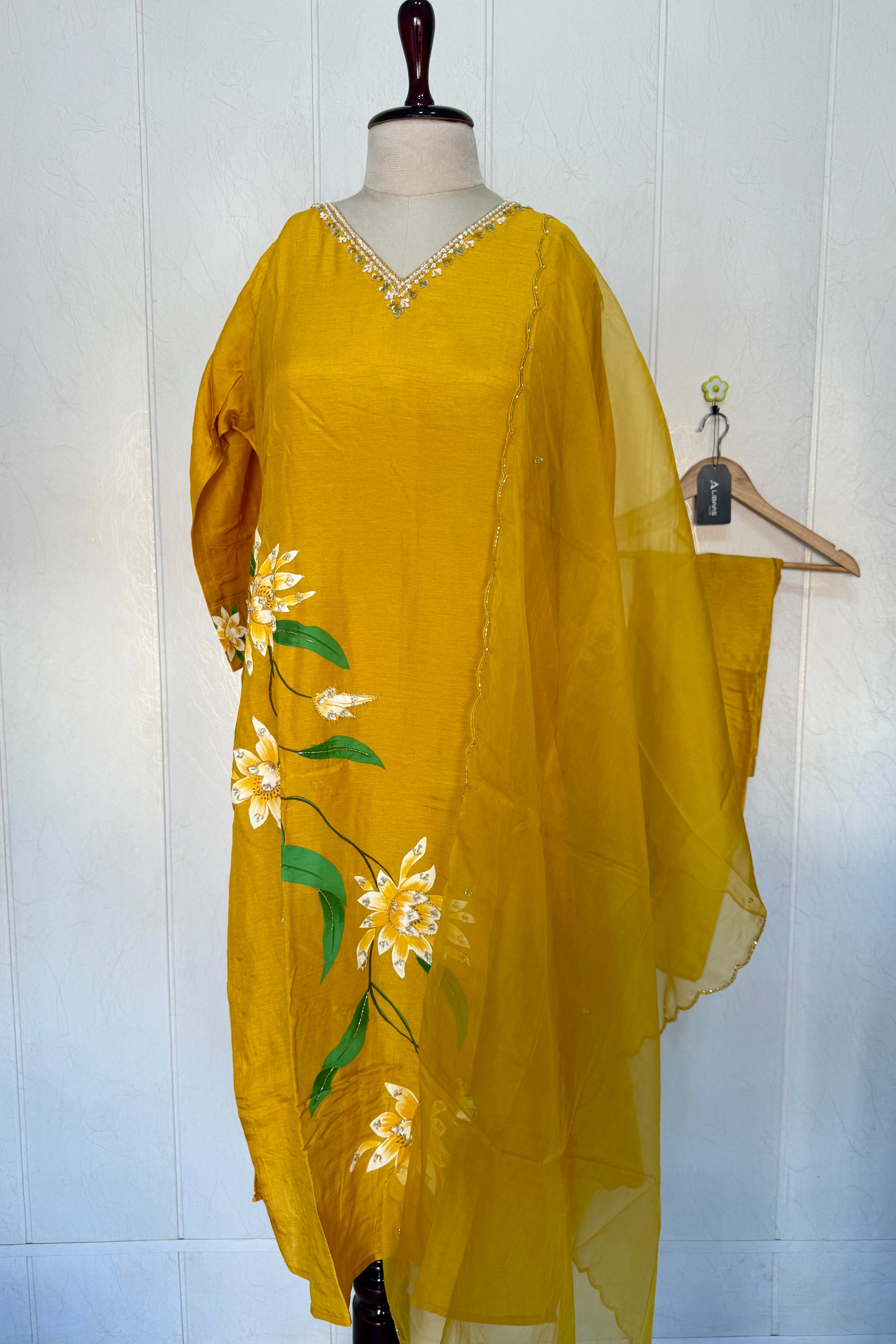 “Yeefa” Mustard Yellow dola silk hand print kurta set