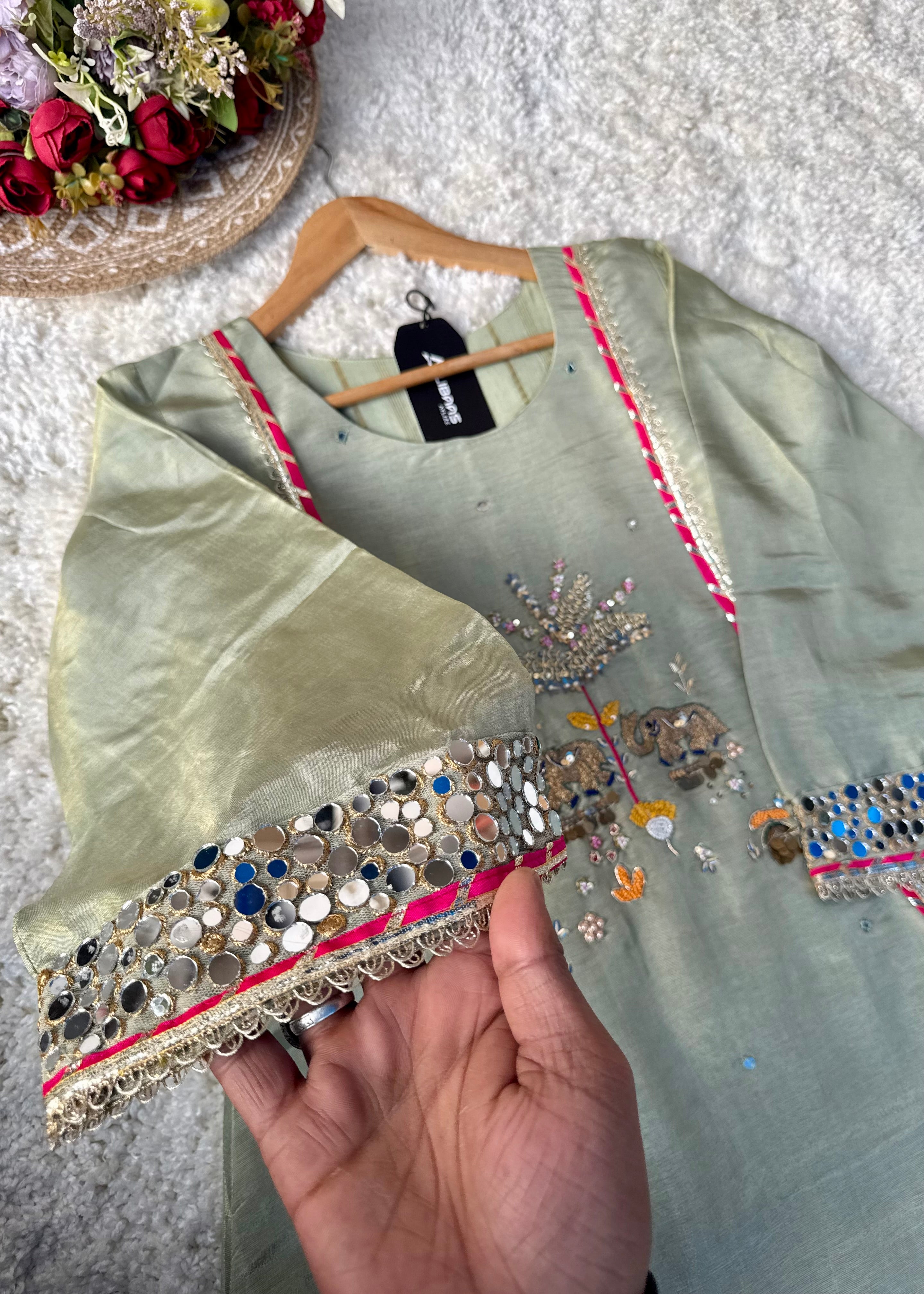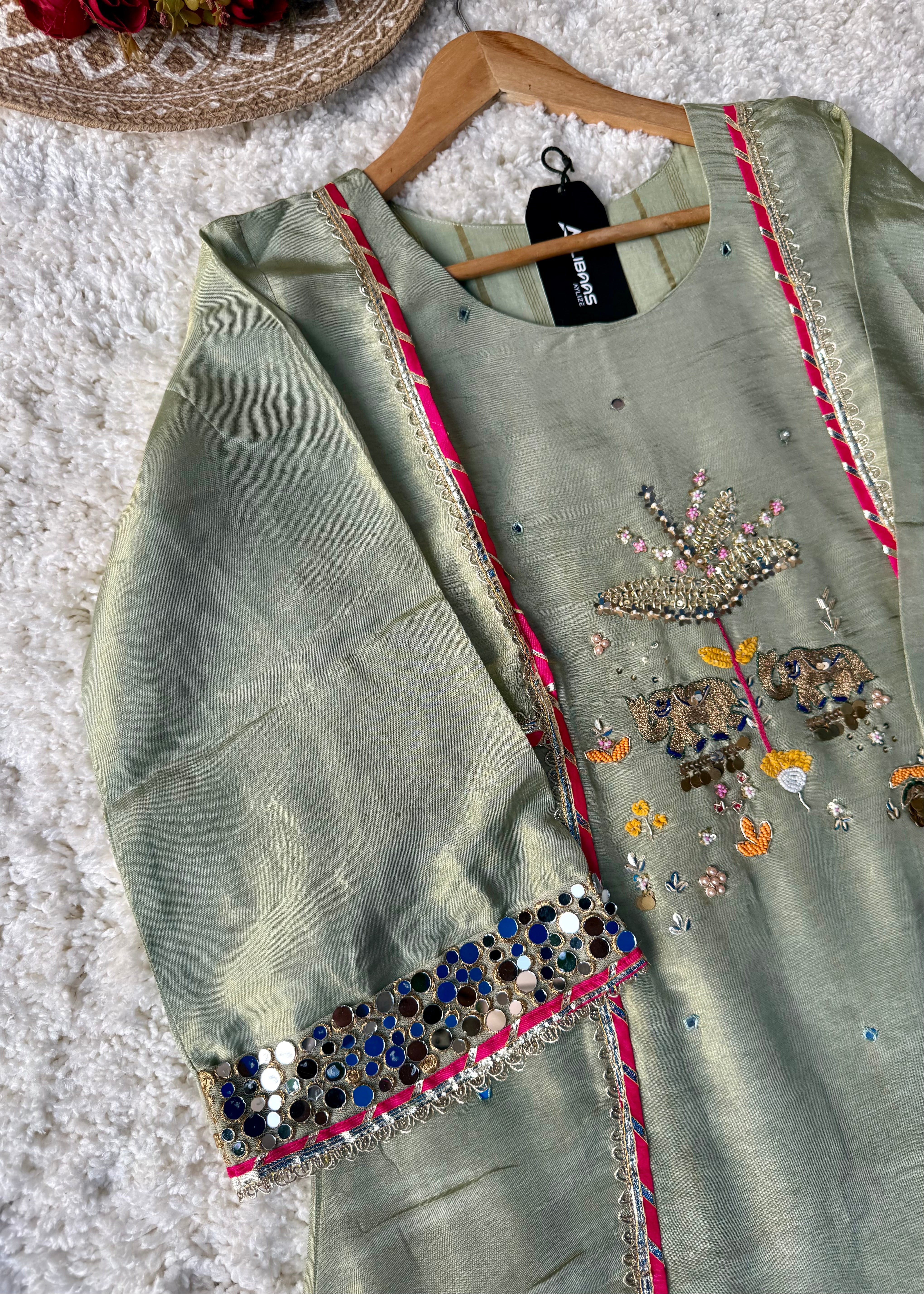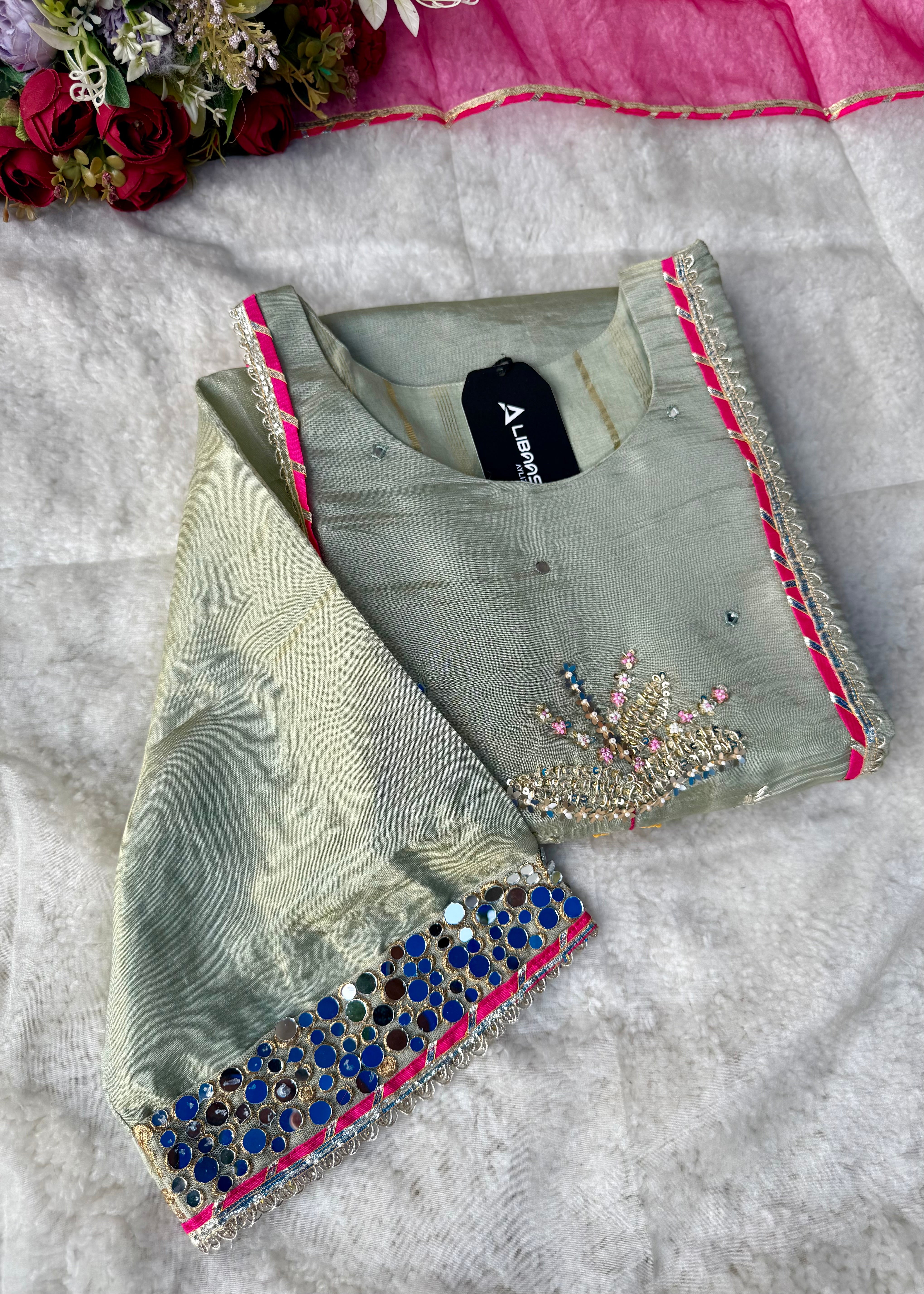 - Work: Handwork + Zari Embroidery + Mirror Work