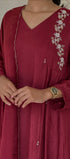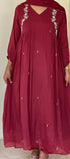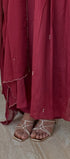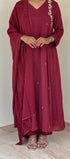 Premium Chinnon anarkali kurti with beautiful handwork on all over the the top with a long chinnon dupatta and a chinnon bottom