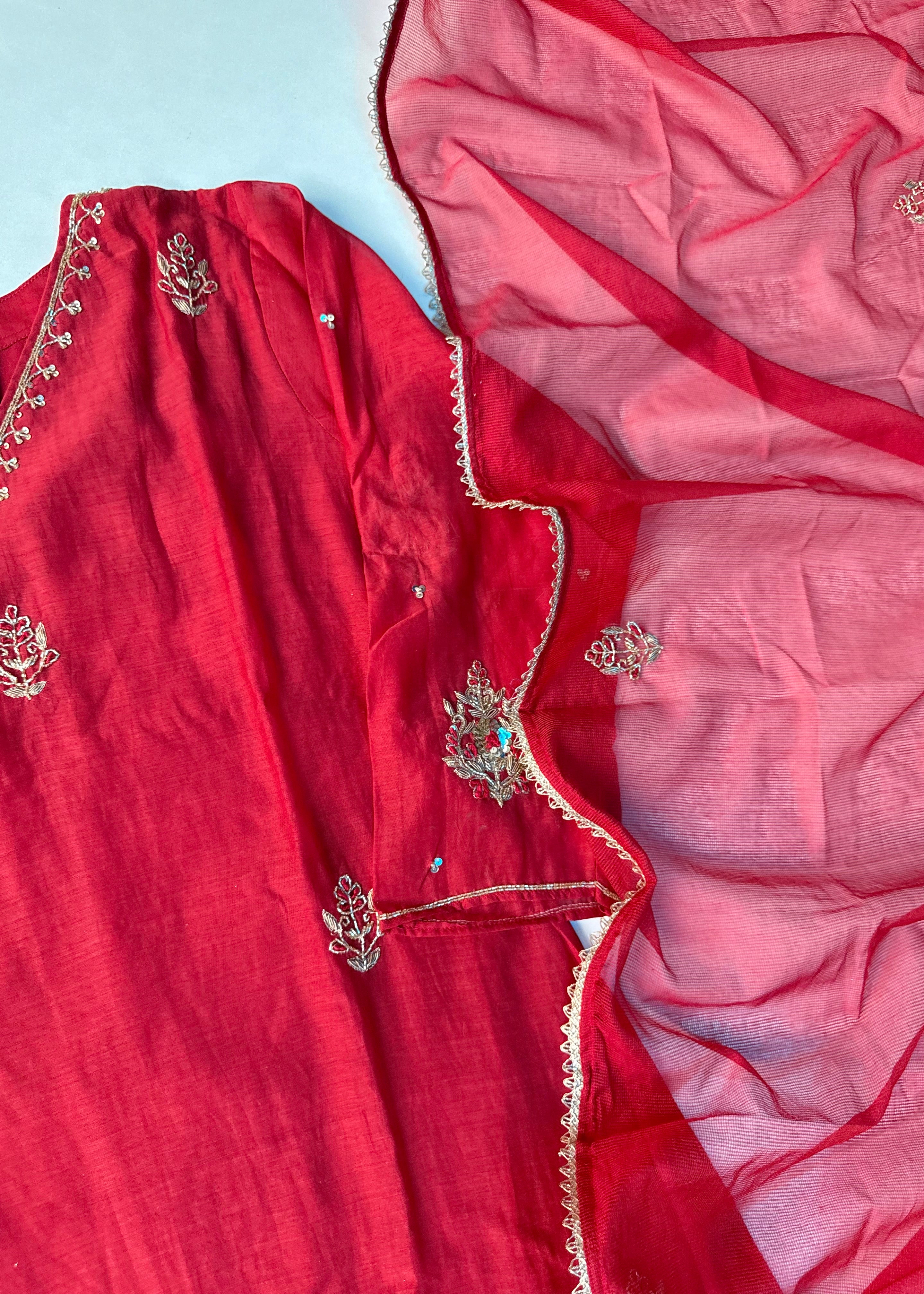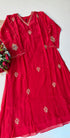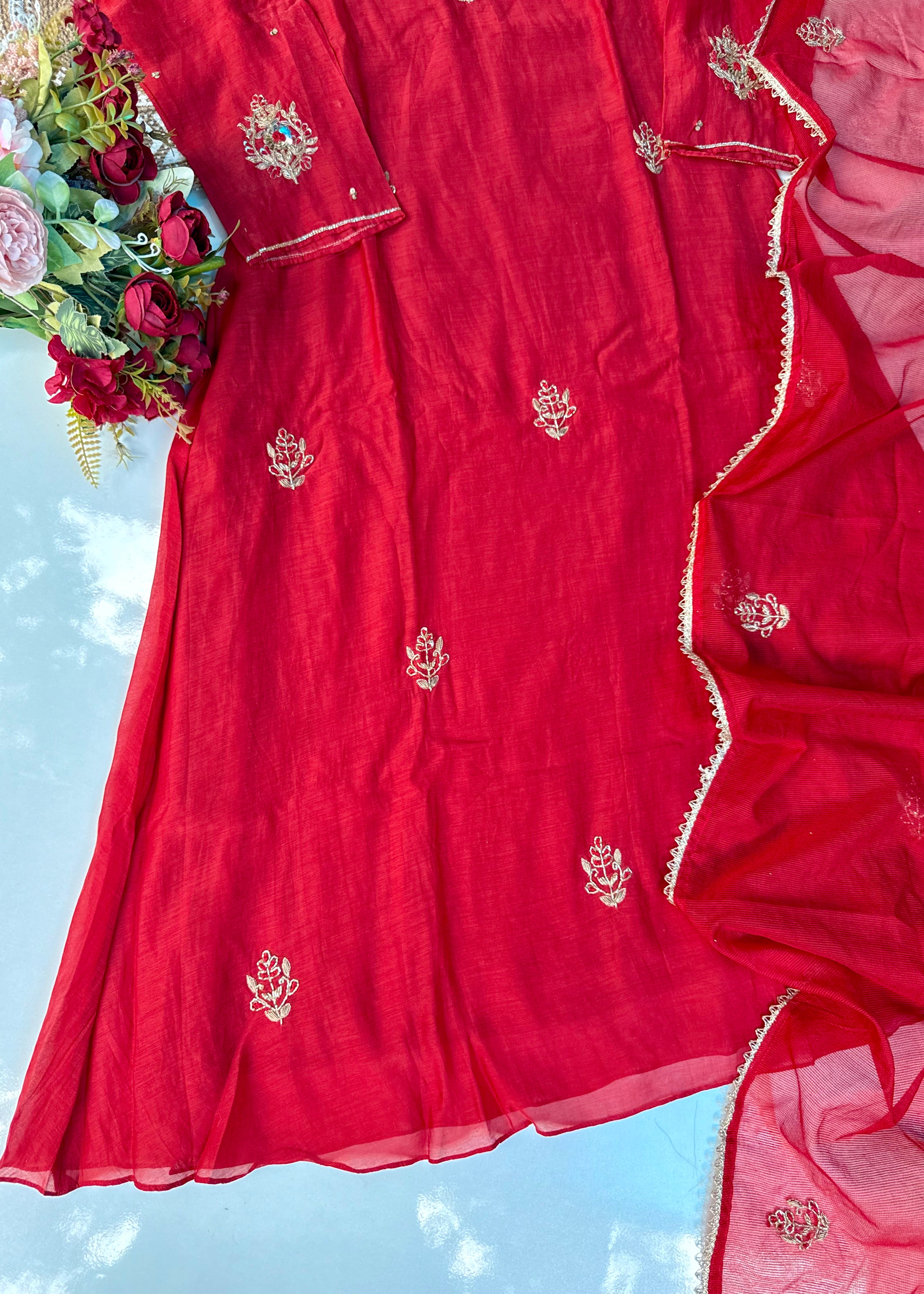 “Zeenat” Beautiful Red Mul Chanderi A line Anarkali Kurta Set