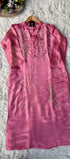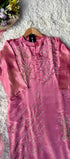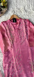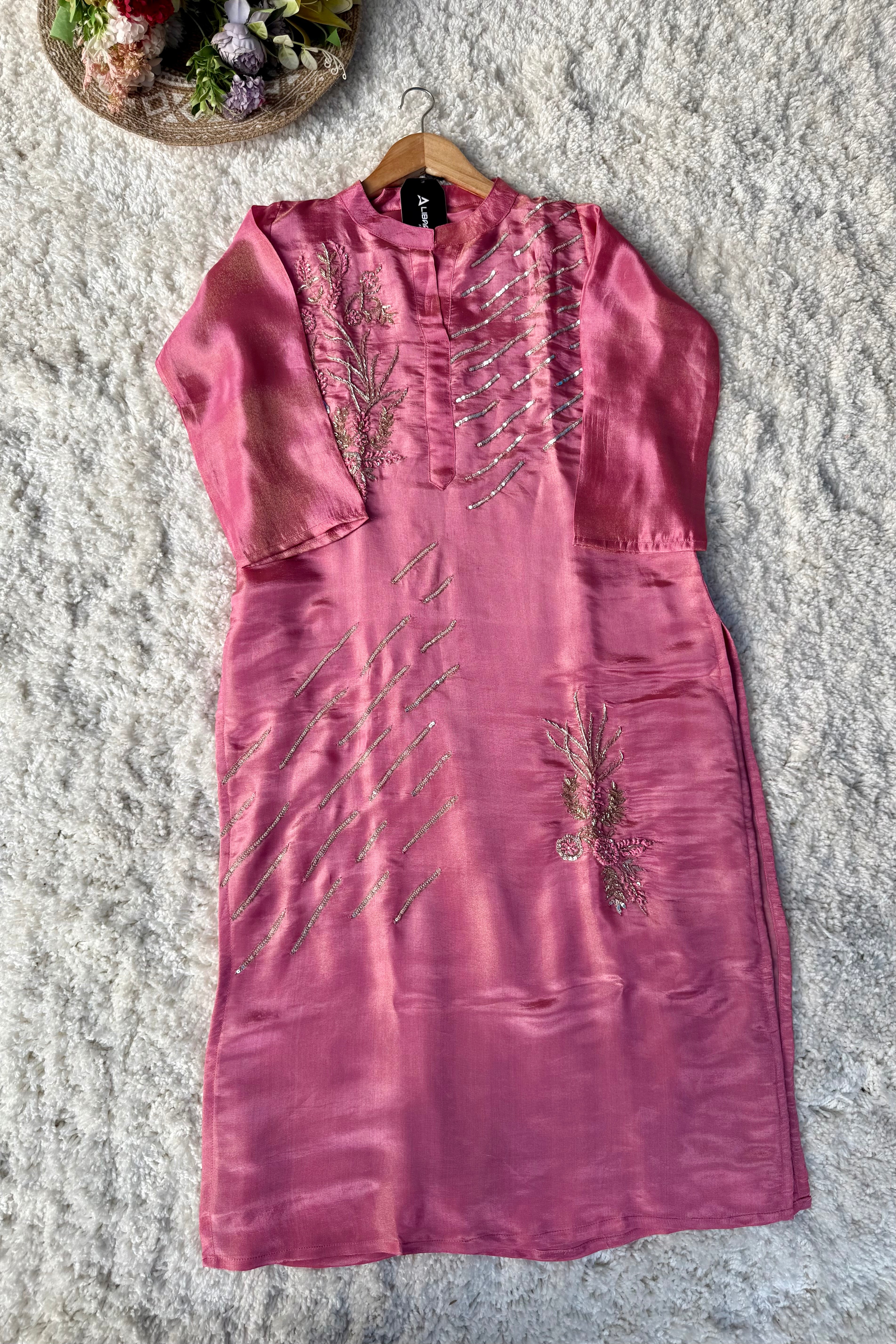 “Zena” Dusty Rose Pink Tissue Silk Kurta Set with Elegant Handwork - XS