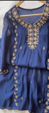 “Faraj” Navy Blue Pure Mul-Chanderi Party wear A Line suit set