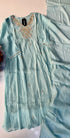 Beautiful premium mul chanderi kurti with zari and kadh dana work attached with mul cotton lining, comfortable mul chanderi pants with cotton lining and full length soft mul cotton dupatta covered with beautiful zari work.